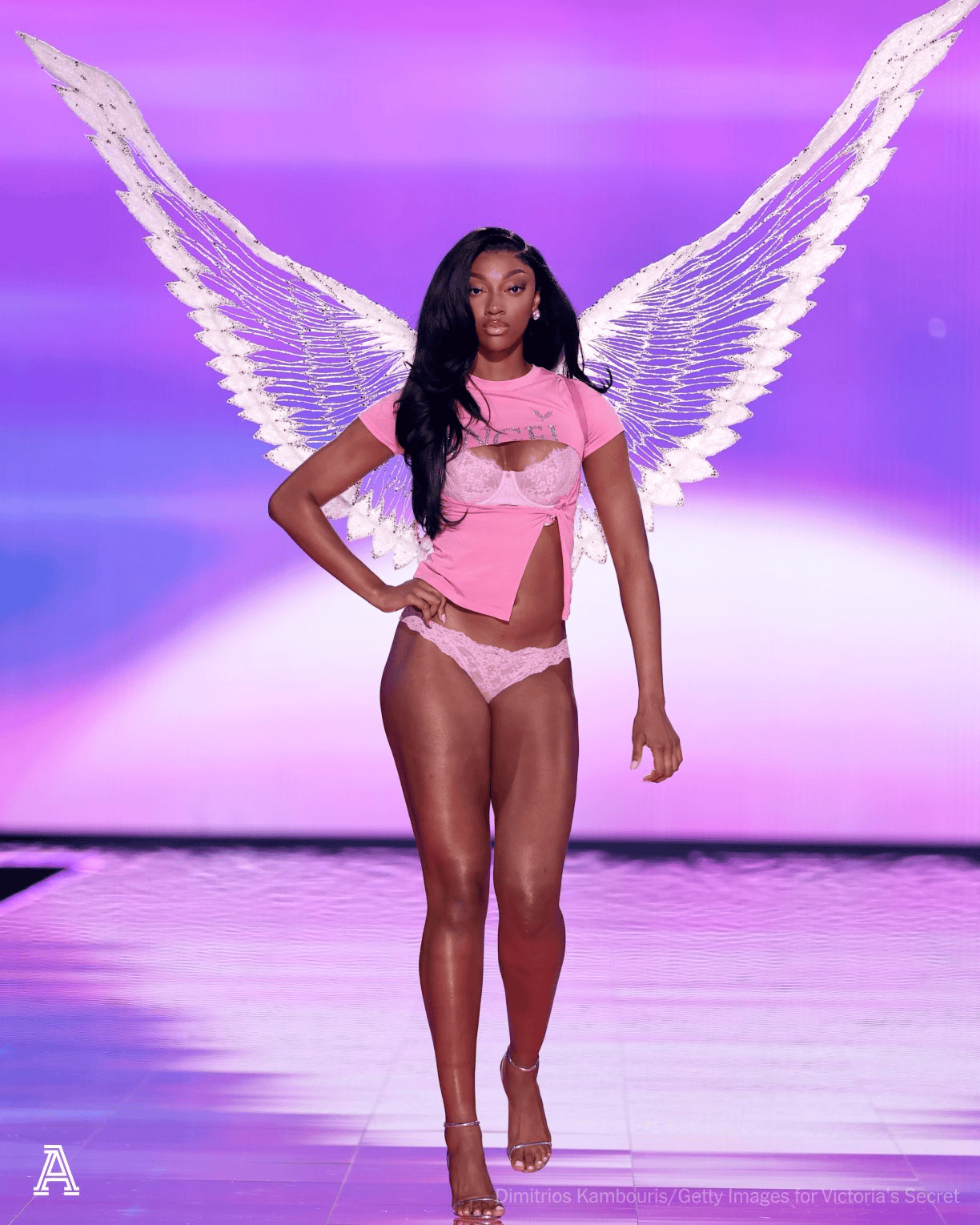 虎扑10月16日讯自媒体Hoops晒出WNBA球员安吉尔-里斯维密秀首秀照片:选择50万美元还是安吉尔-里斯?
