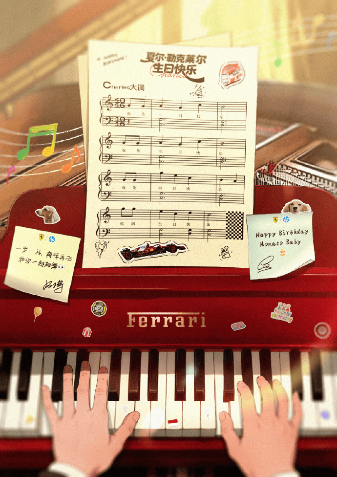 法拉利车队写道:“今天是谁过生日?是他!28岁的夏尔一定是最幸福的人。”