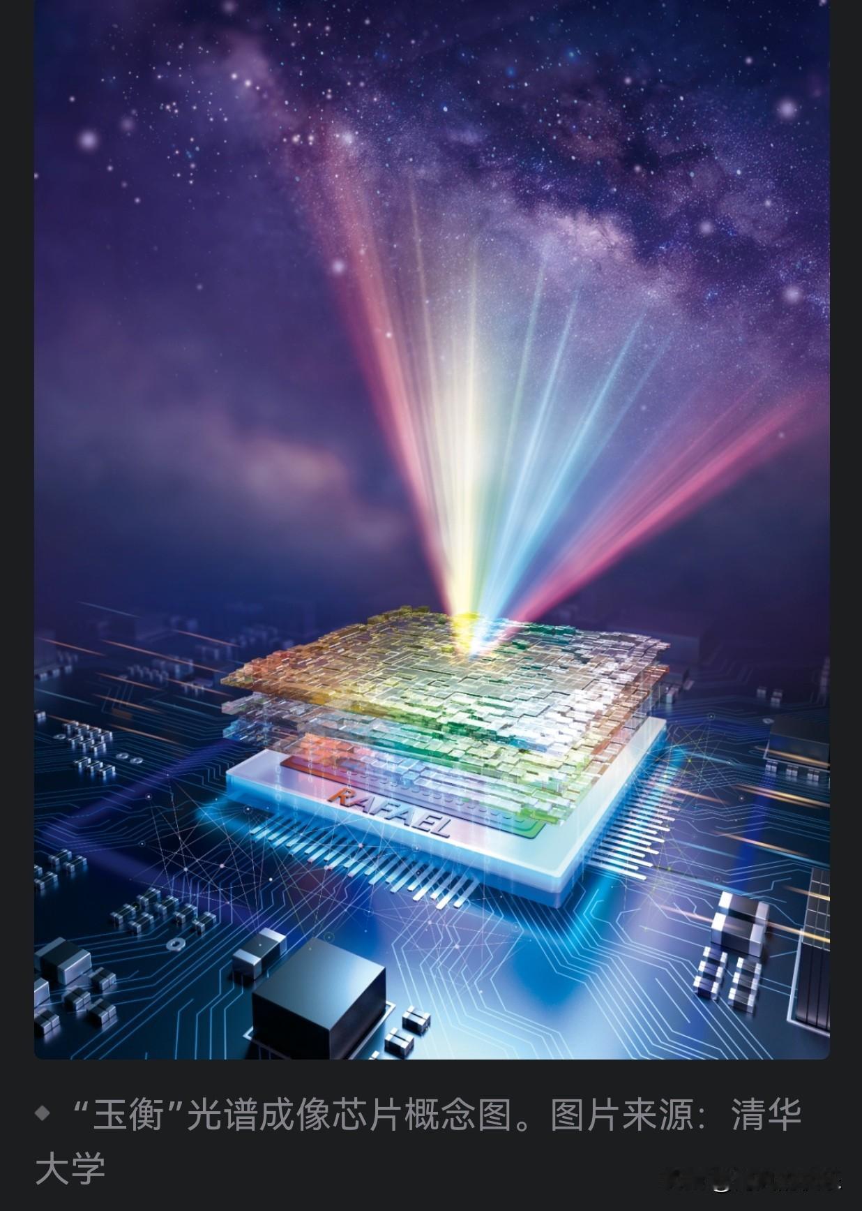 全球首款,成功问世!中国芯片研制获重大突破 据媒体报道15日记者从清华大学获悉,该校电子工程系方璐教授团队在智能光子领域取得重大突破,成功研制出全球首款亚埃米级快照光谱成像芯片“玉衡”,标志着我国智能光子技术在高精度成像测量领域迈上新台阶。相关研究成果在线发表于学术期刊《自然》。 科研团队基于智能光子原理,创新提出可重构计算光学成像架构,将传统物理分光限制转化为光子调制与计算重建过程。通过挖掘随机干涉掩膜与铌酸锂材料的电光重构特性,团队实现高维光谱调制与高通量解调的协同计算,最终研制出“玉衡”芯片。 “玉衡”芯片仅约2厘米×2厘米×0.5厘米,却可在400—1000纳米的宽光谱范围内,实现亚埃米级光谱分辨率、千万像素级空间分辨率的快照光谱成像,能在单次快照中同步获取全光谱与全空间信息,其快照光谱成像的分辨能力提升两个数量级,突破了光谱分辨率与成像通量无法兼得的长期瓶颈,为高分辨光谱成像开辟了新路径。 方璐表示,“玉衡”攻克了光谱成像系统的分辨率、效率与集成度难题,可广泛应用于机器智能、机载遥感、天文观测等领域,以天文观测为例,“玉衡”的快照式成像每秒可获取近万颗恒星的完整光谱,有望将银河系千亿颗恒星的光谱巡天周期从数千年缩短至十年以内,凭借微型化设计,它还可搭载于卫星,有望在数年内绘制出人类前所未有的宇宙光谱图景。