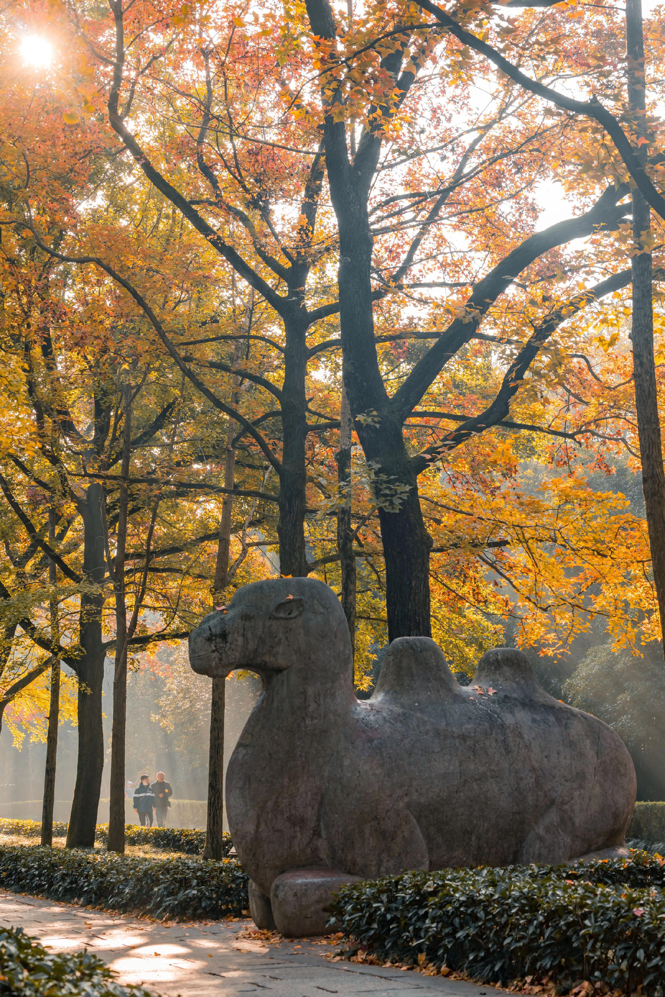 如果秋天只能去一个地方,那当然是明孝陵。南京明孝陵的秋天,是一场为期一个多月的限时绚烂。当秋风为世界文化遗产披上金装,六百年的石刻,便演绎出一曲最磅礴又最静谧的金陵秋梦