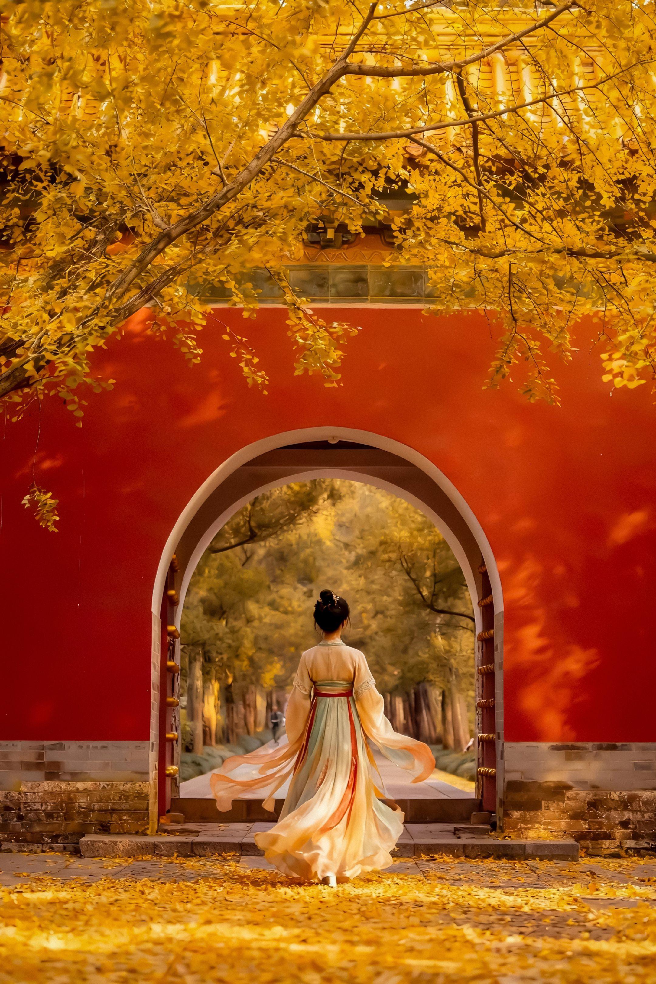 内红门前数株百年古银杏撑开一片金色天幕,秋风拂过,门里门外皆是璀璨的“银杏雨”。那道门,仿佛隔开了两个世界——门外是流转的秋光,门内是凝固的历史。