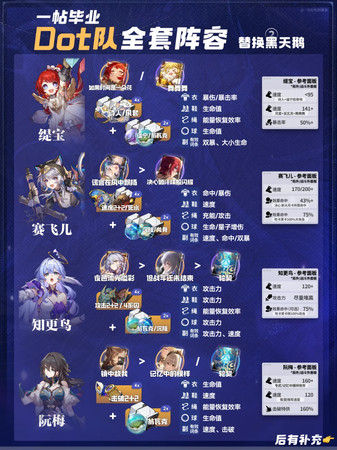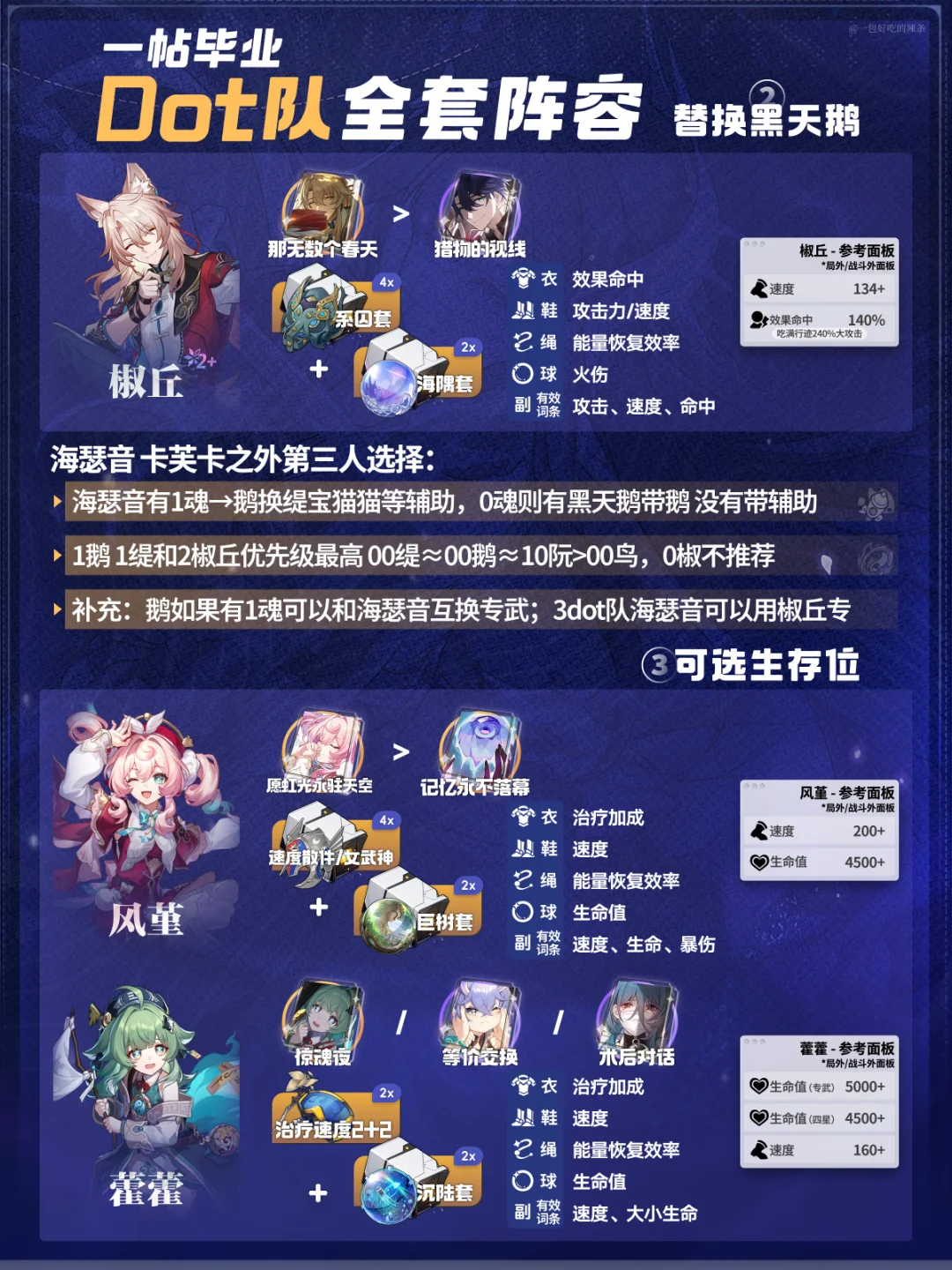 其他队伍因为各种原因就不做了,腾荒不涉及拉条 不影响原有配队配速 即插即用,除了遐蝶都能带 泛用性很强 长夜月也能带腾荒 虽然吃不到拐,比加拉赫好用 不过伤害没什么变化 - 其他队伍有问题可以在这个下面回复,看到都会解答 白厄留到下期异相仲裁的节点发吧,因为白厄也只有王棋关需要生存位