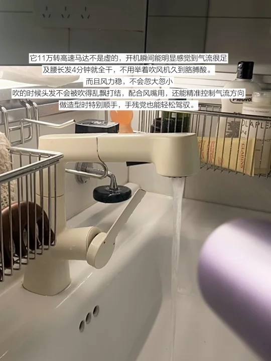 它有11万转的高速马达,风速超猛💨!以前吹完一套手臂酸得像刚练完,现在四五分钟直接全干!早上能多赖床十分钟,谁懂啊!😭