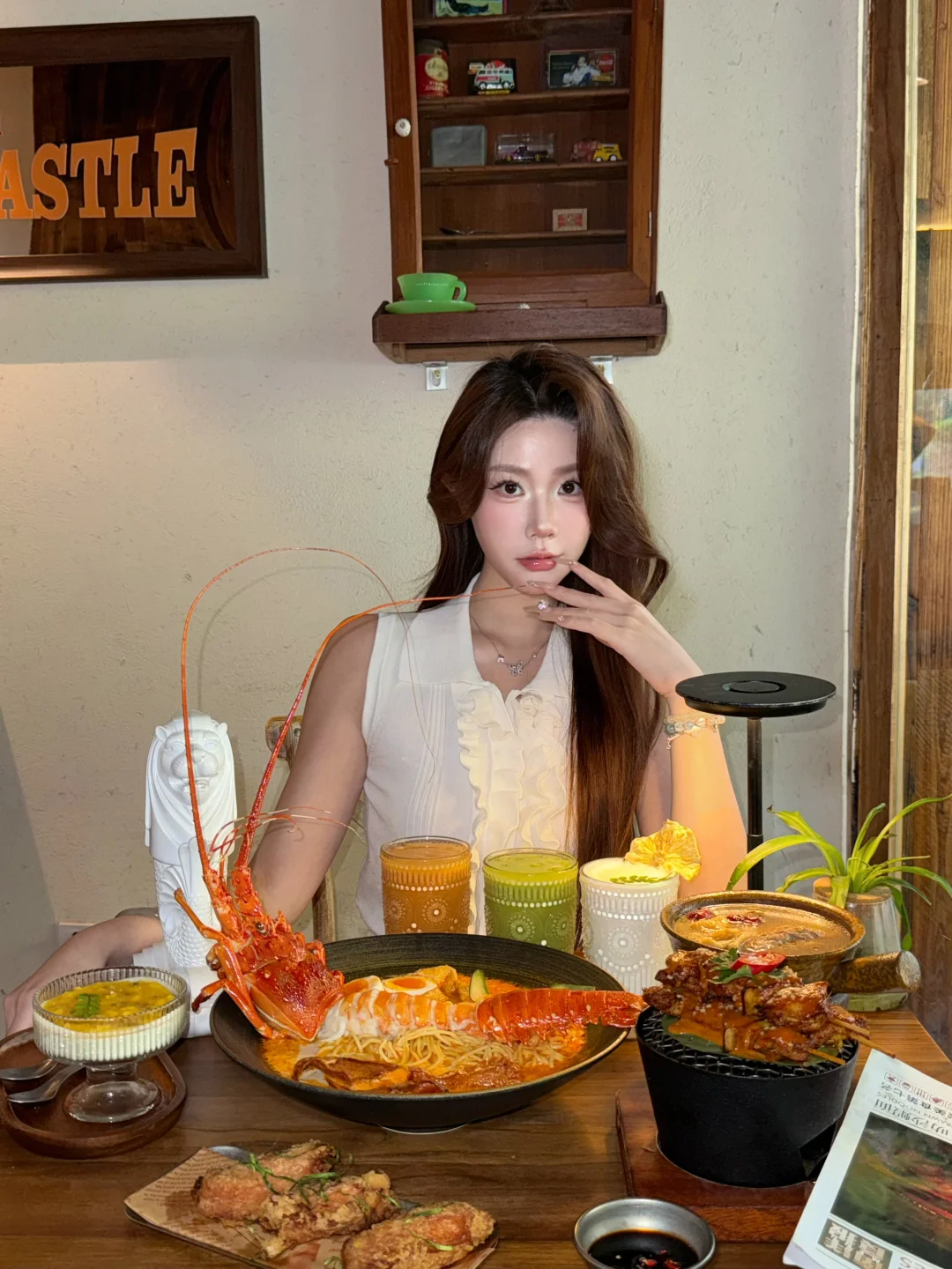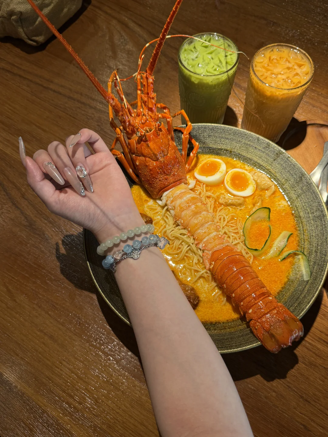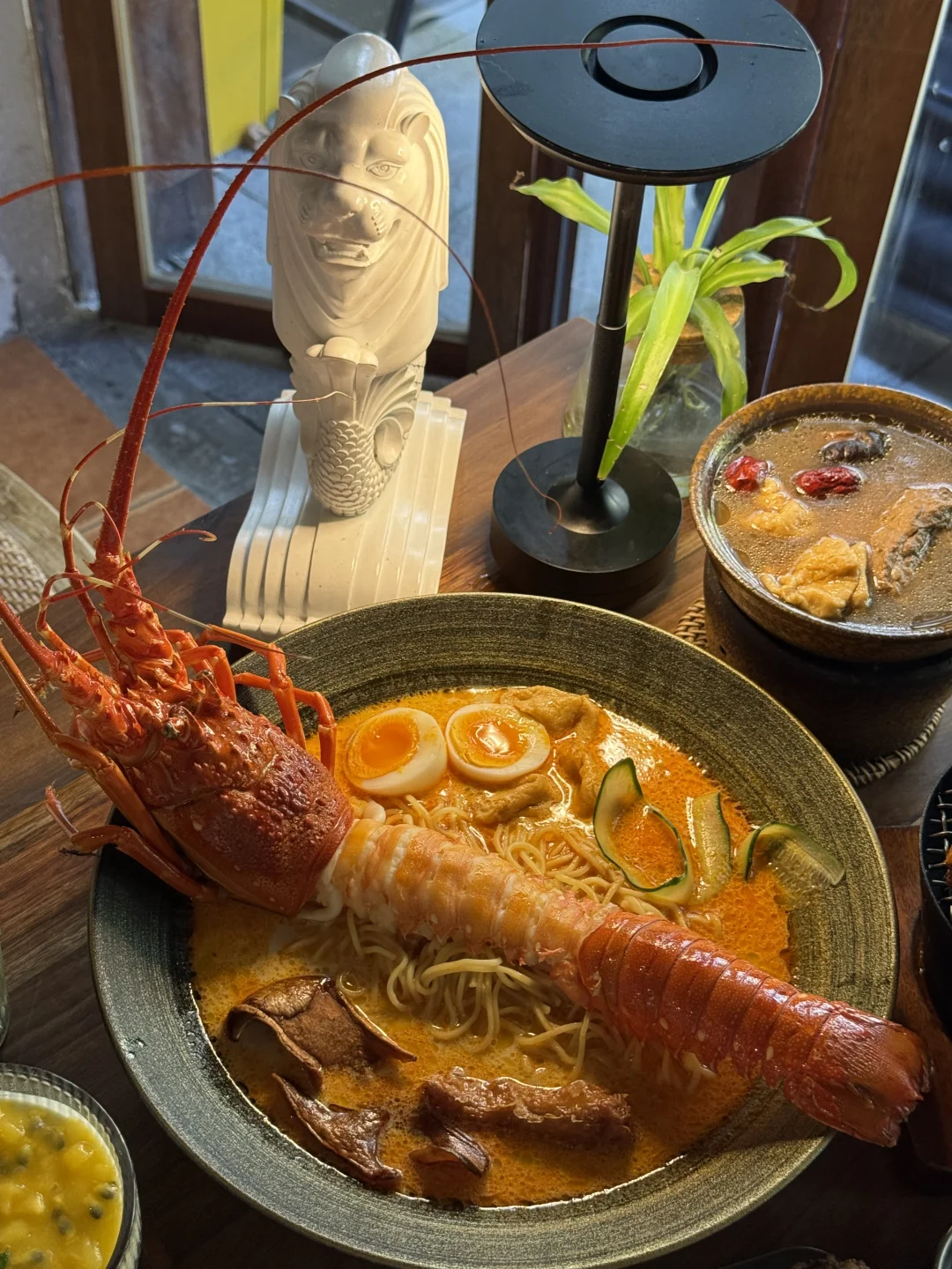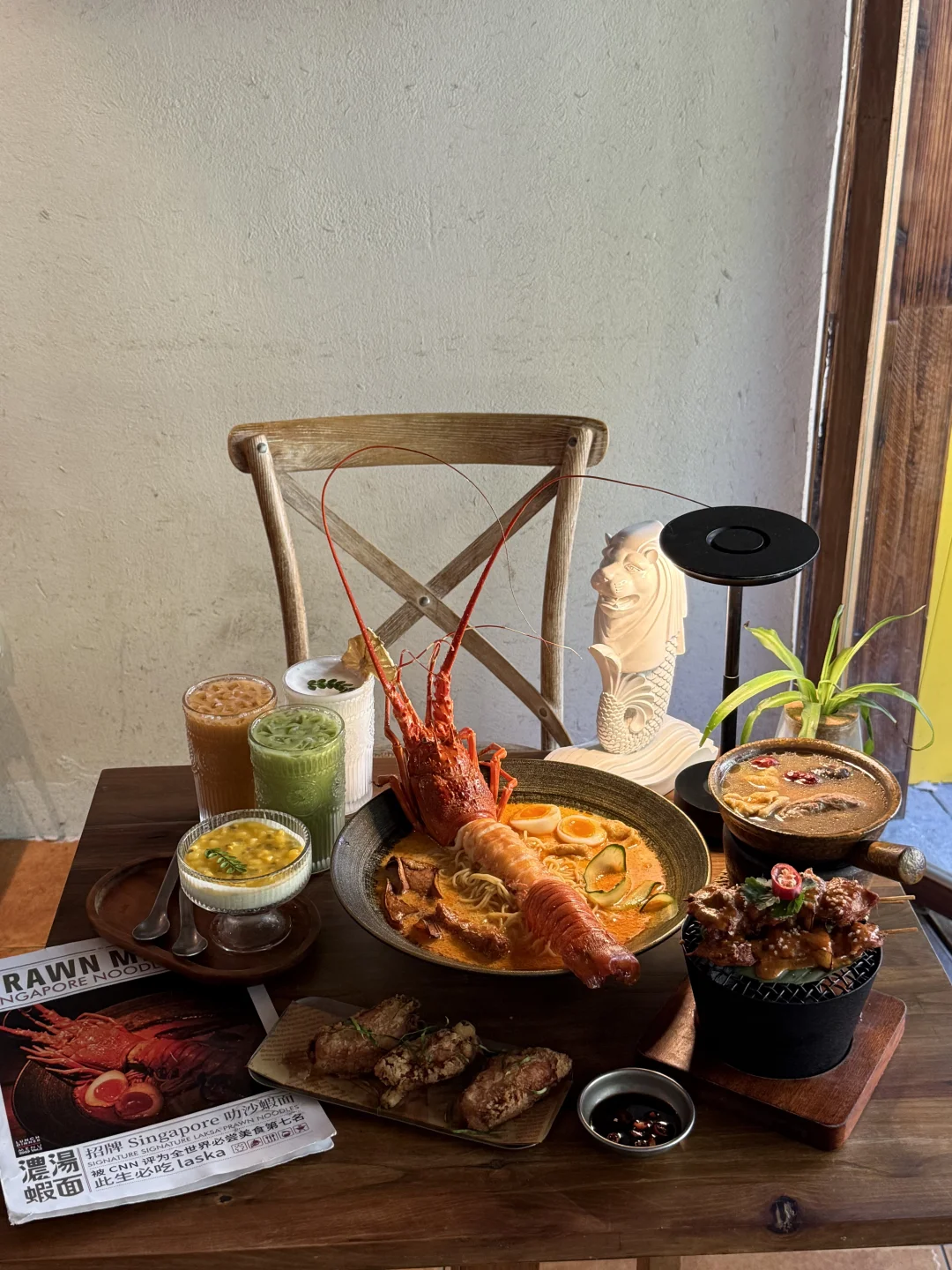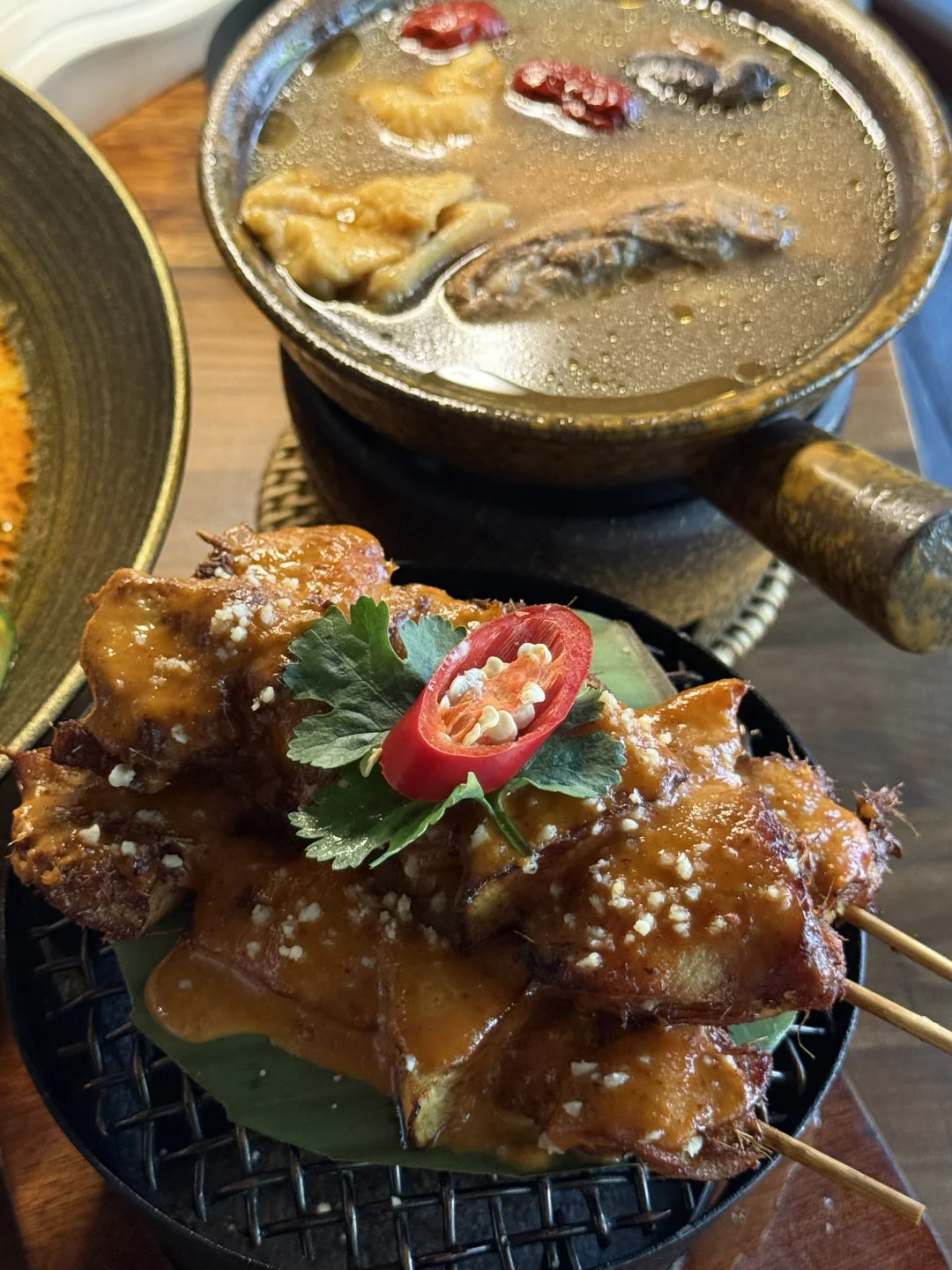跟手臂差不多大的小青龙把谁看馋了! 酸爽浓郁的汤底也是料多多 鲜嫩入味Q弹爽滑的口感还想再来一碗🥰 第二爱的是香茅鸡中翅 香茅和清香和鸡翅的酥嫩融合的很好🥹 沙爹鸡肉串和肉骨茶也蛮不错的 🫧和我在新加坡吃的一样~ 整体环境是东南亚风格蛮有格调的 老板也是很有腔调的类型