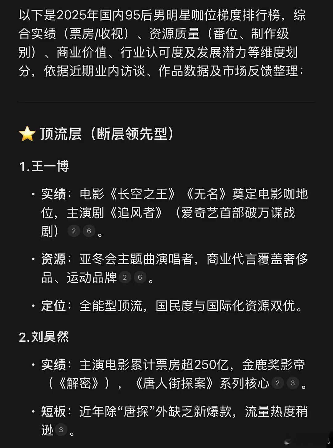 AI整理的95🥜格局,认可吗 王一博刘昊然