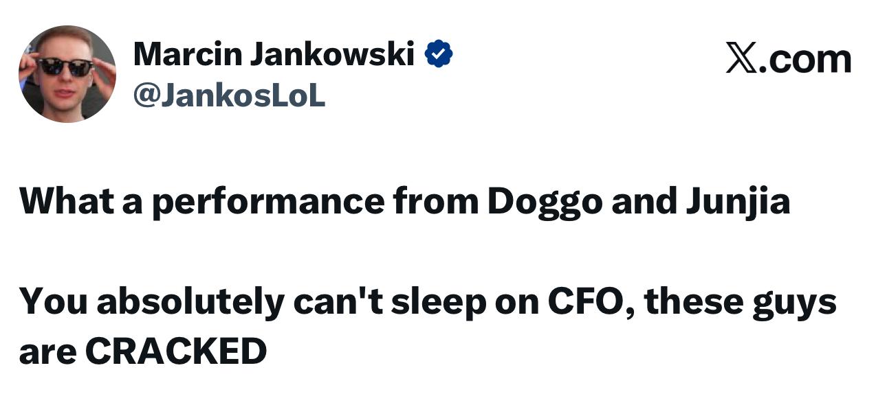 Jankos发文:你绝对不能忽视CFO,这帮家伙太强了
