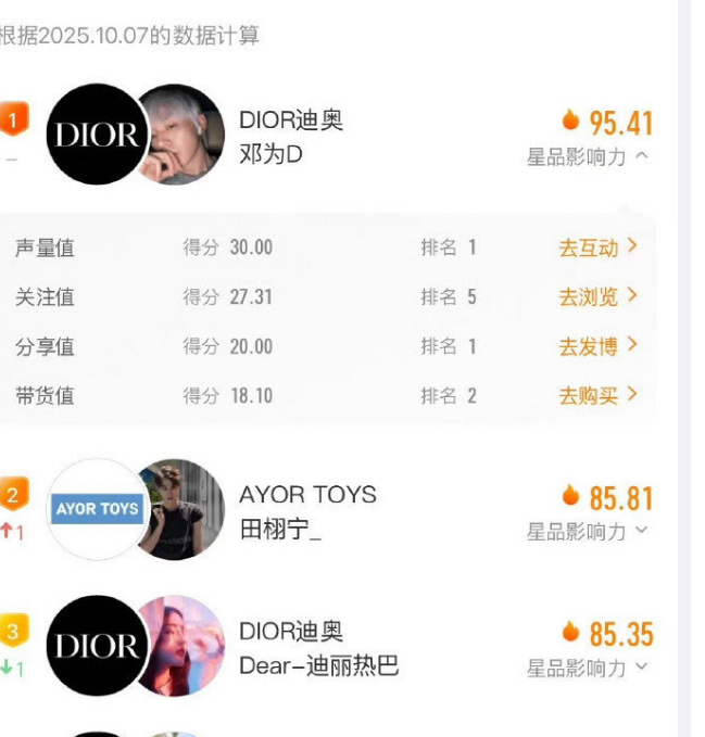 邓为已经连续5天,星品影响力排行榜第一名了,这可是网友和粉丝,实打实用真金白银投出来的
