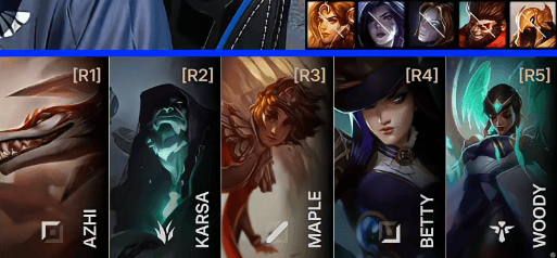 PSG选用:Azhi掘墓;Karsa纳亚菲利;Maple岩雀;Betty女警;Woody卡尔玛