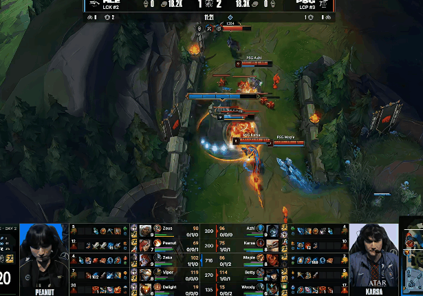 17分钟,HLE团战阵型更优拿下小龙,随后Peanut果断开团击杀Karsa