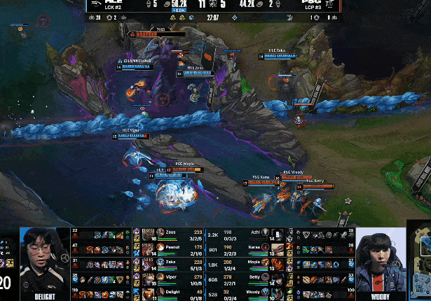 虎扑10月16日讯HLE众人伤害爆炸一拥而上,击杀PSG四人后无需大龙一波取胜