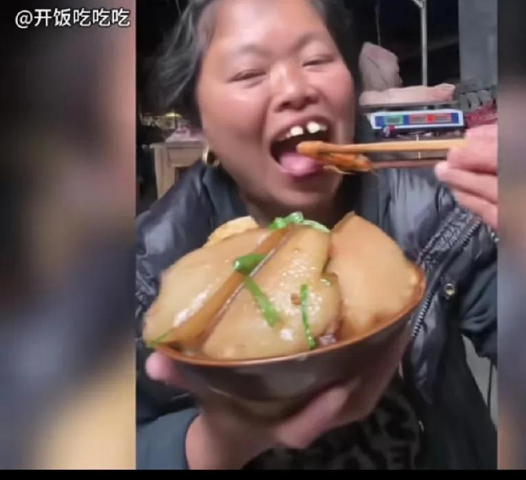 看到这一大碗肥猪肉,都反胃,每餐都这样吃,不怕脂肪高。 医生说吃肥猪肉不好,看这个大姐,一点影响都没有。