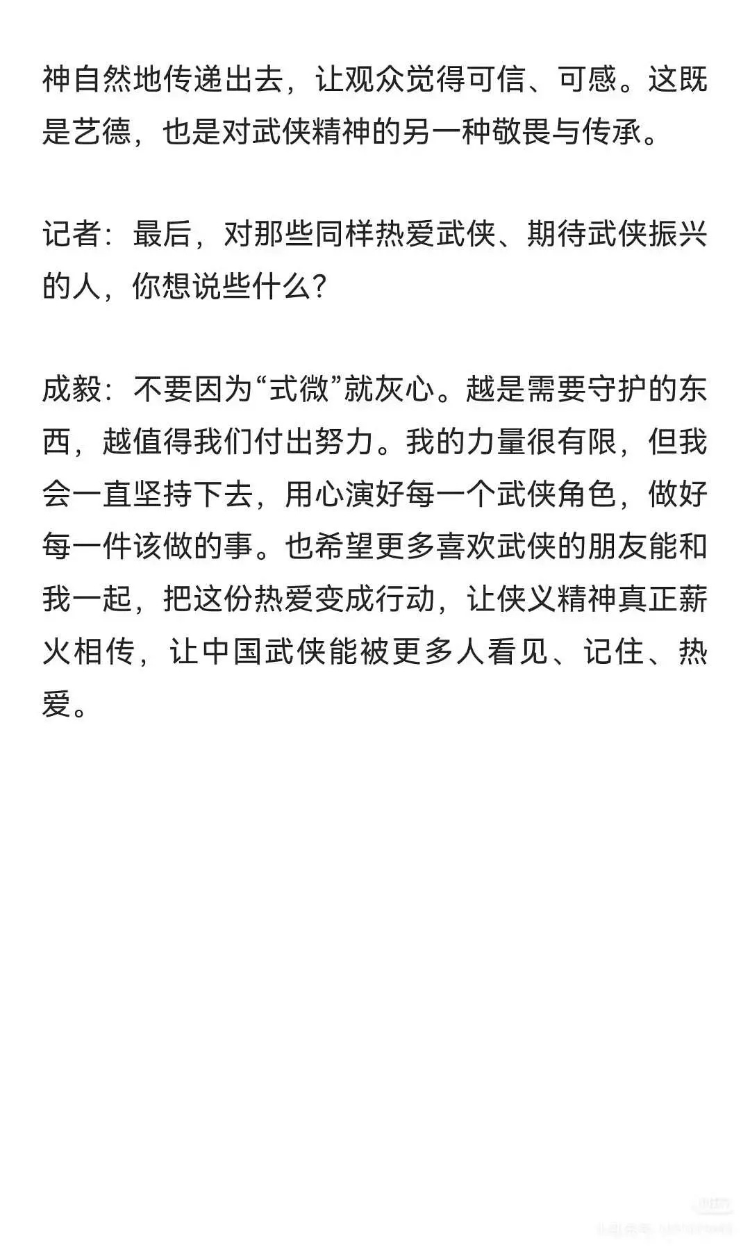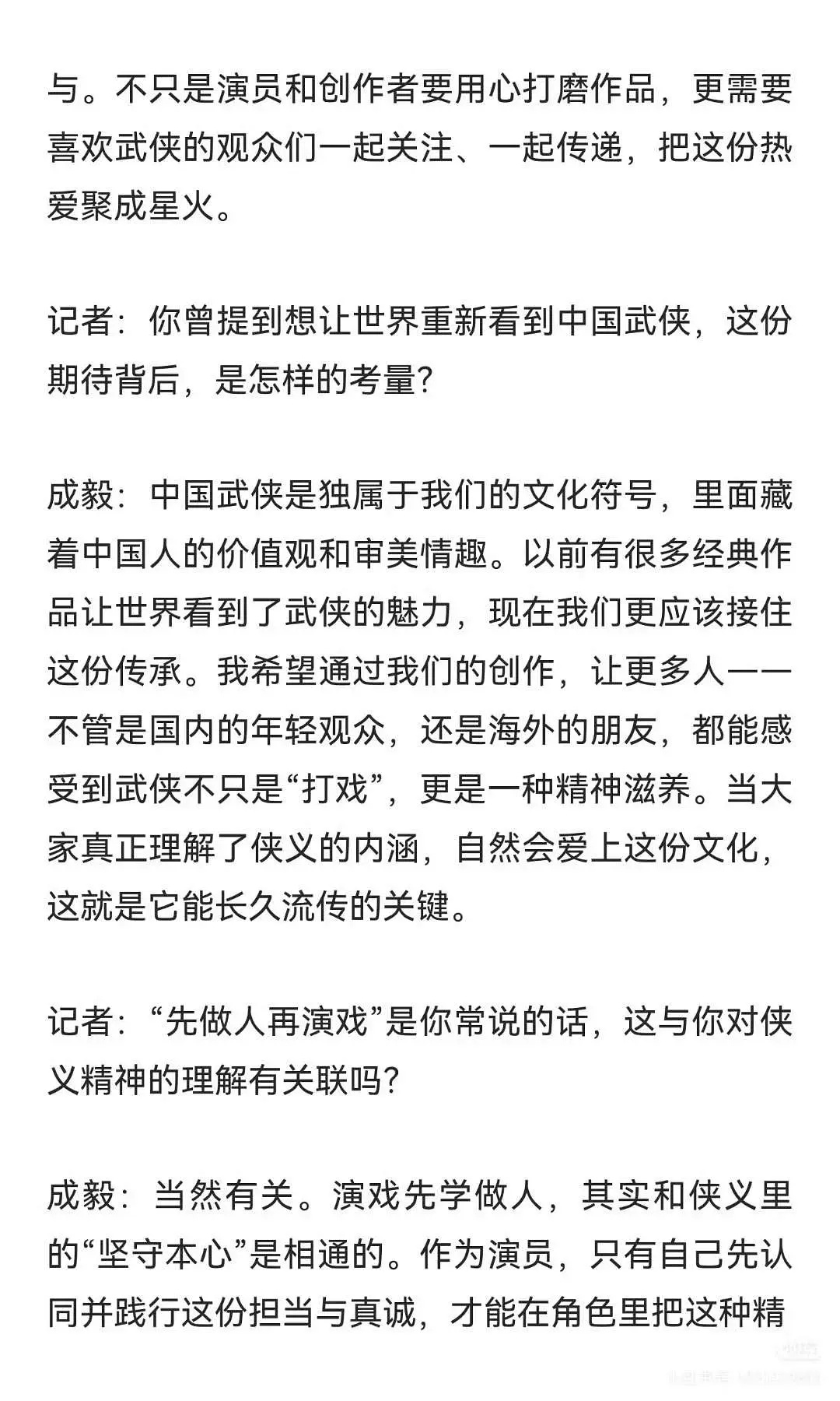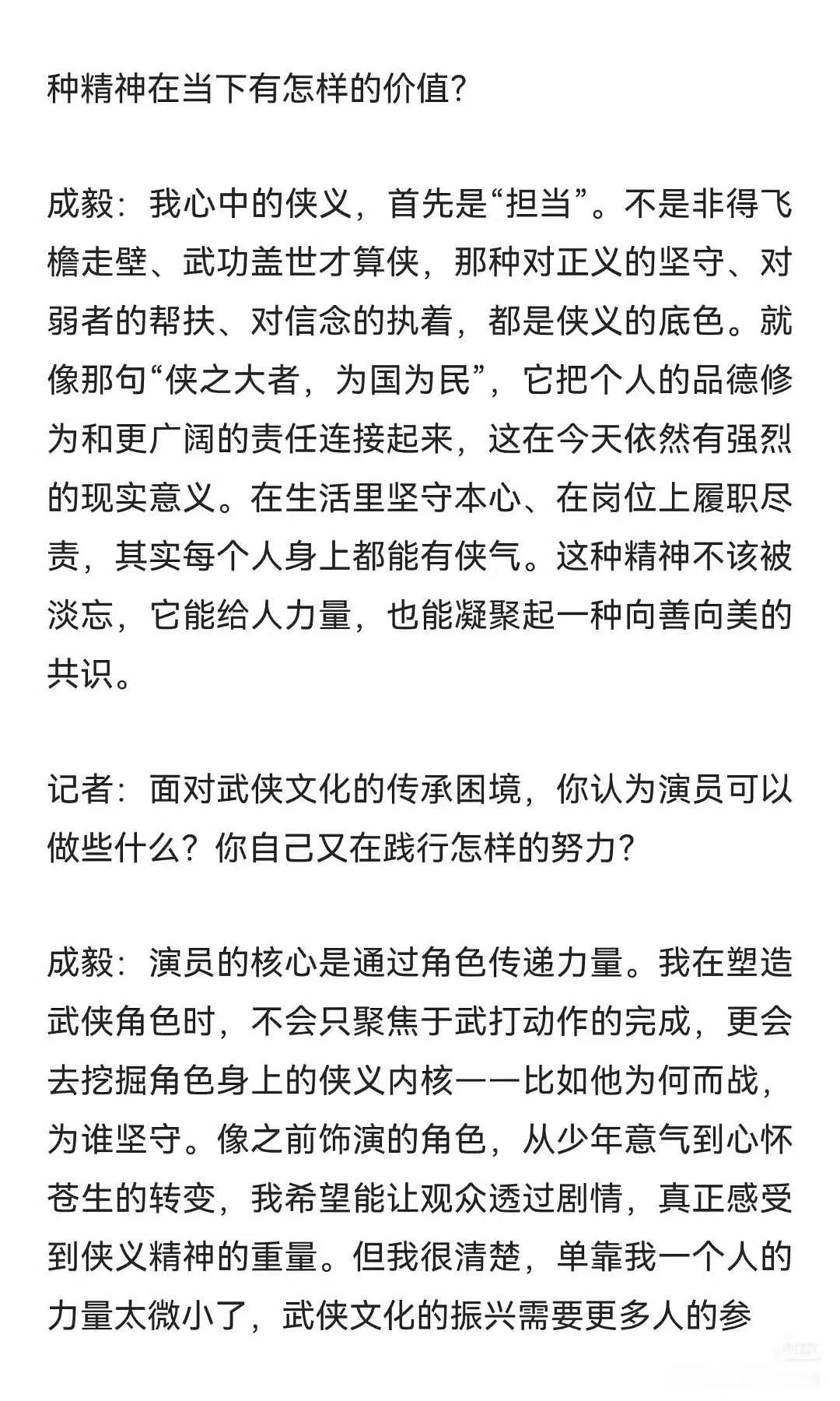 成毅的采访真的挺真诚的Rmrb主持人:为什么平时不爱用替身?成毅:因为爱呀。他真