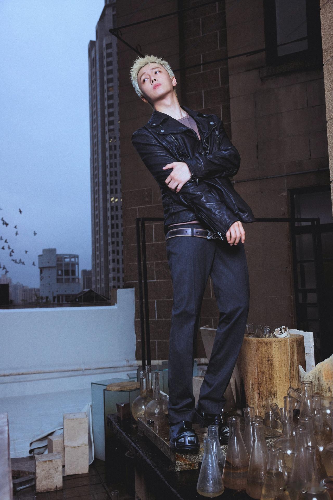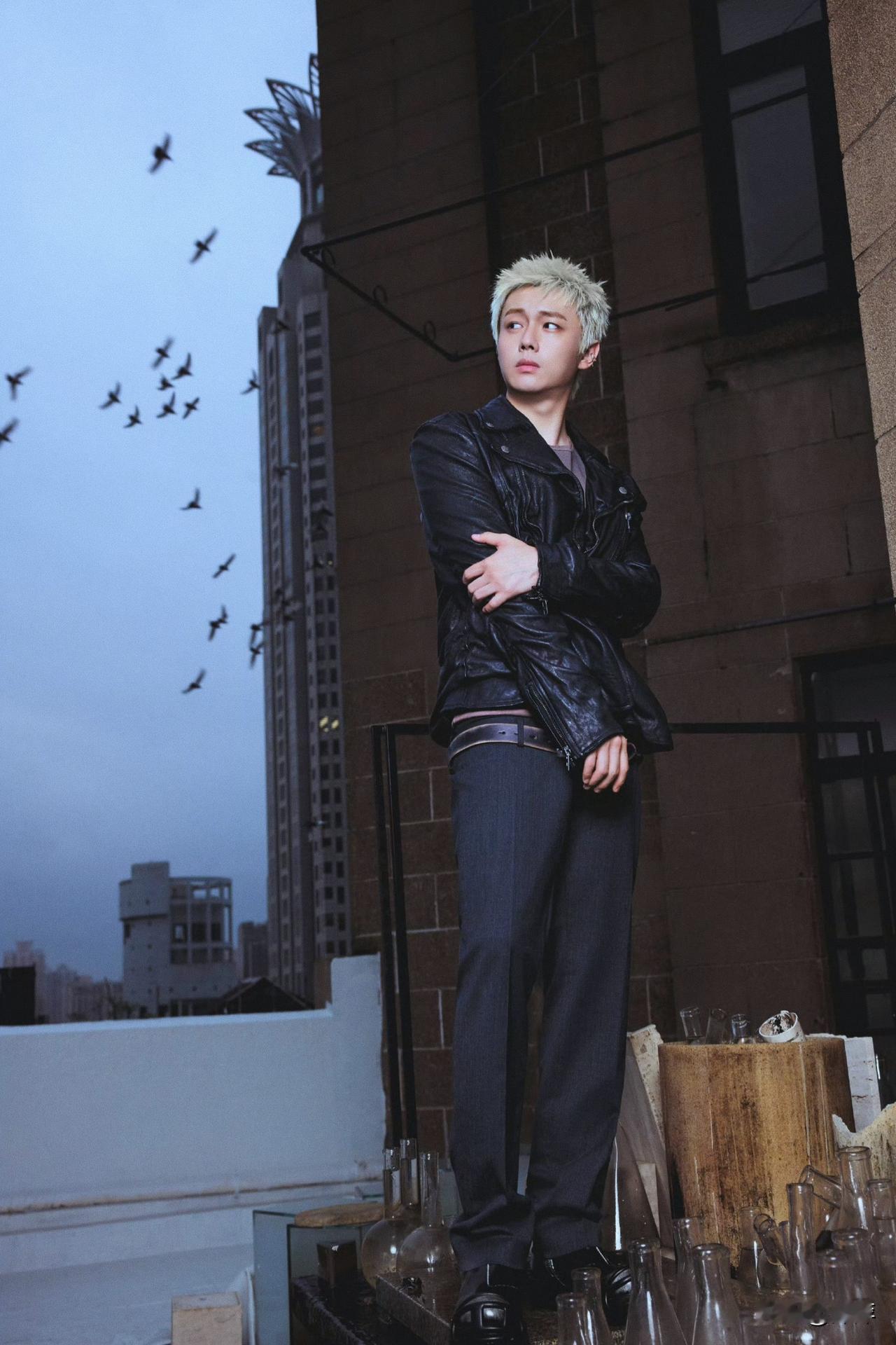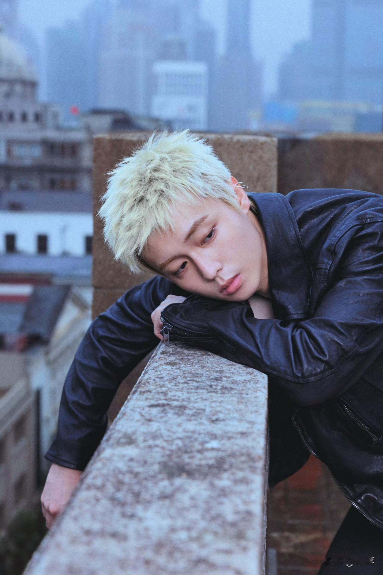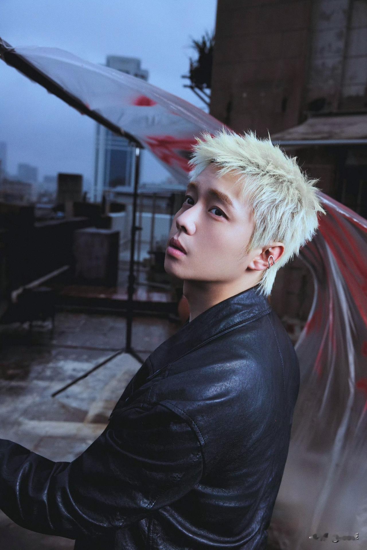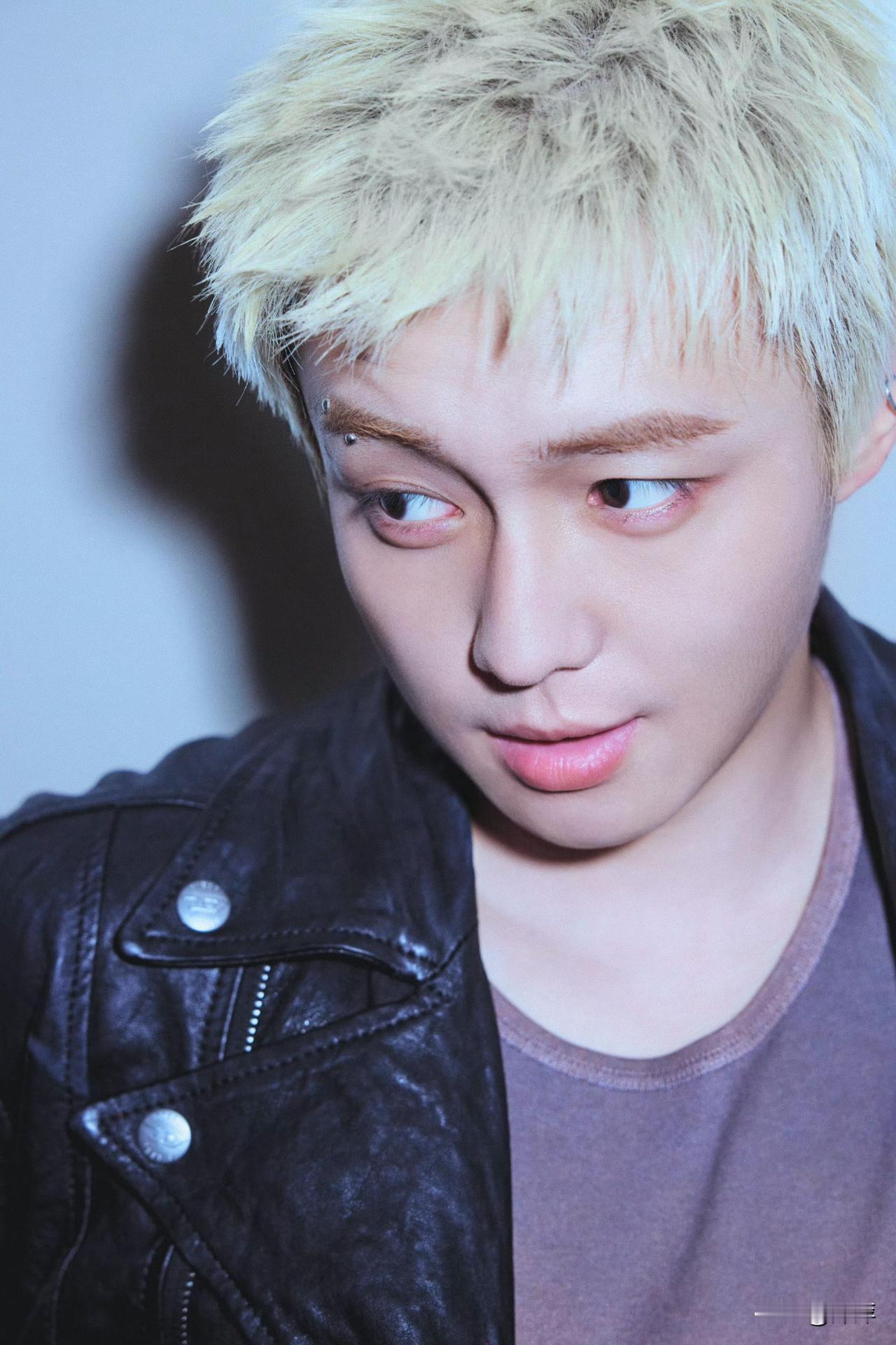 翟子路.黑色皮衣金发造型!