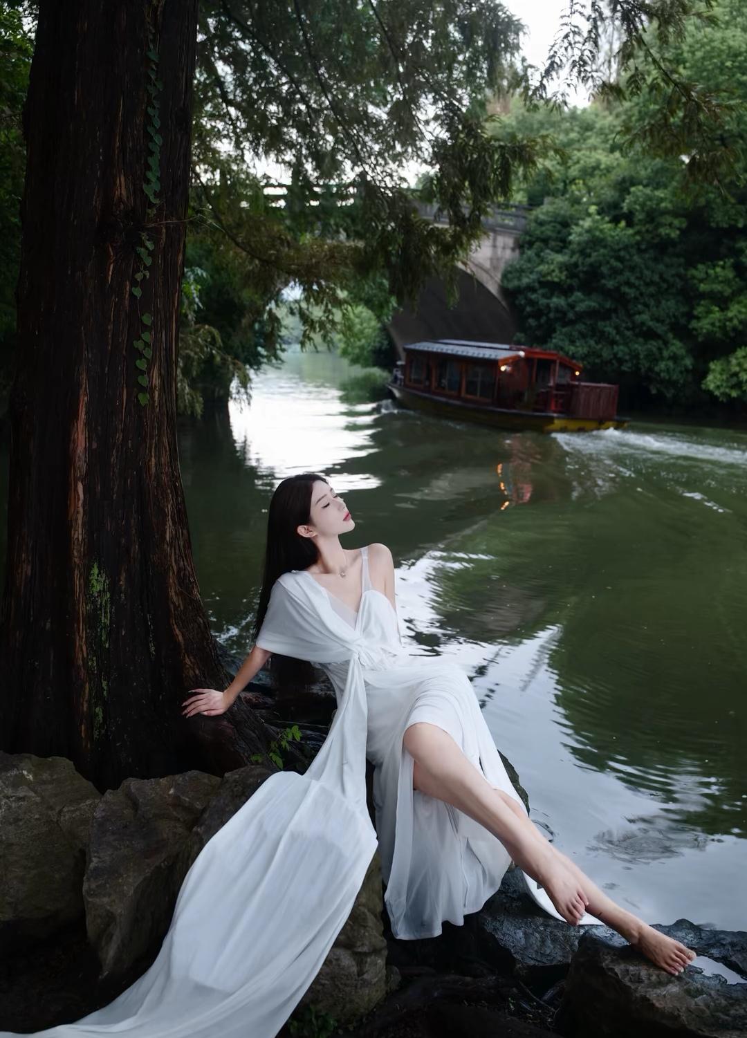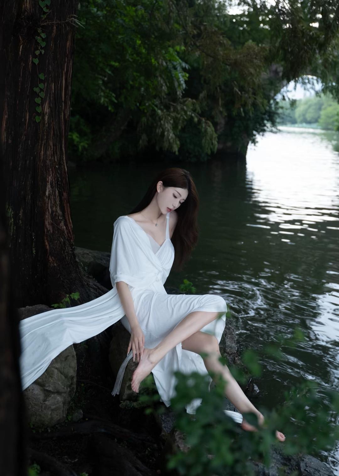 在湖边静坐,感受自然的宁静与美好。