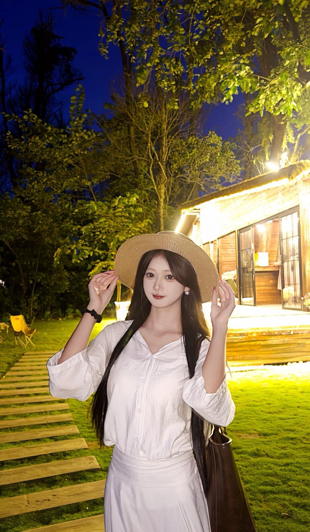 夏日清新穿搭,白色连衣裙搭配草帽,轻松惬意!🌞👗👒