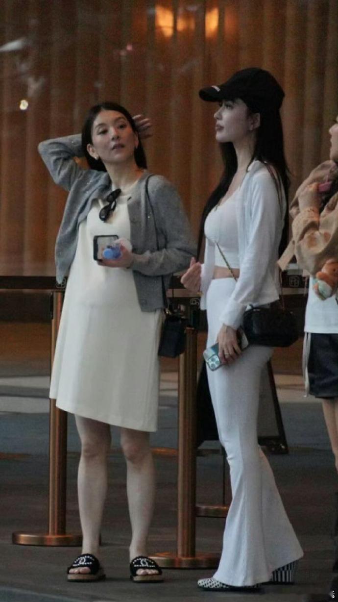 郭富城老婆方媛和闺蜜一起外出逛街购物,她挺着9个月孕肚,状态看起来非常好,四肢纤