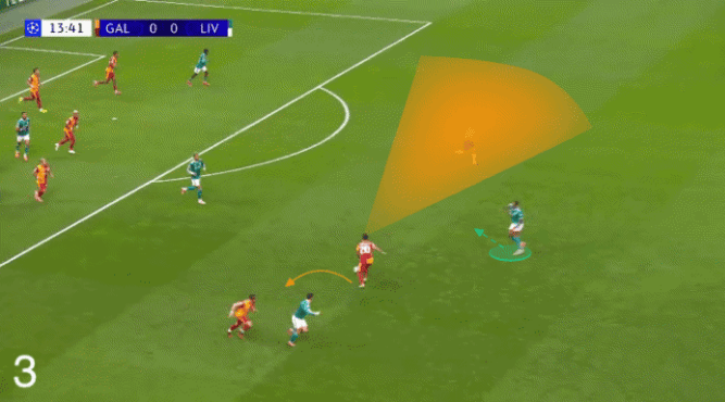 观察和视野仍然是他比赛的关键。以下是加拉塔萨雷最近在欧冠联赛中1-0战胜利物浦的一个例子。在三名对方球员的包围下,京多安多次旋转,直到看清了正确的方向。那一刻,京多安发动了反击,最终奥斯梅恩罚入制胜点球。