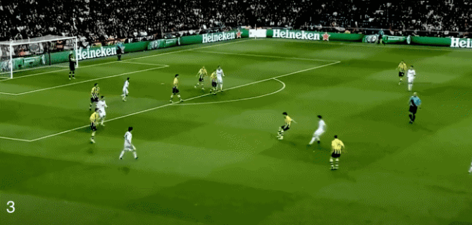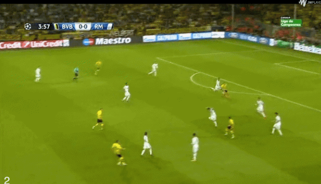 每当我接到球时,我总是试图打开身体。这次,我试图做一个短距离二过一配合,因为马里奥-格策朝我冲过来。然后我看到左路有空位。