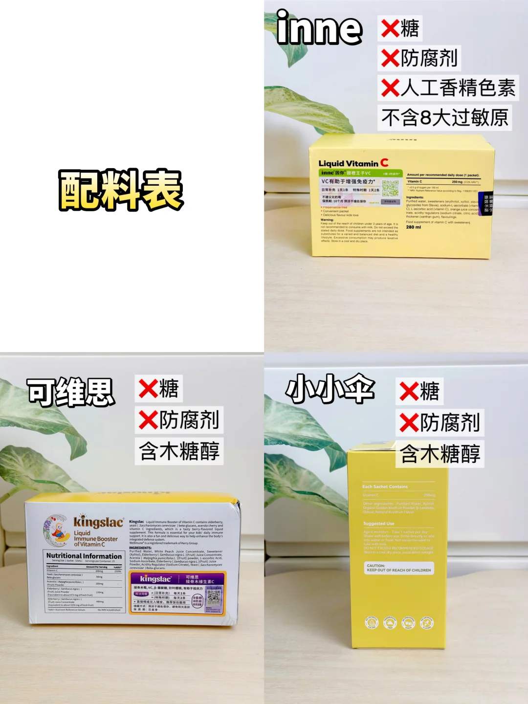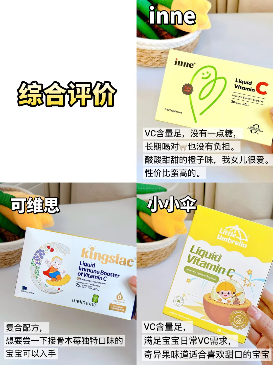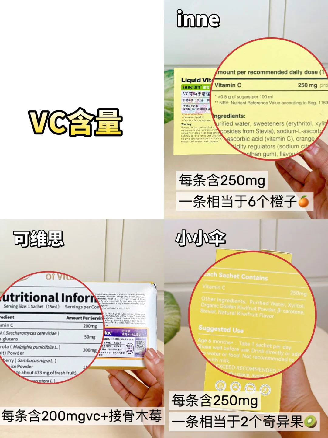 ✅综合下来,三款各有特色,小哈妮喜欢橙子味,而且我很注意她的糖分摄入,所以大促我回购了inne维生素C,不含糖对🦷没有负担,长期喝性价比也高!有需要的姐妹可以参考!