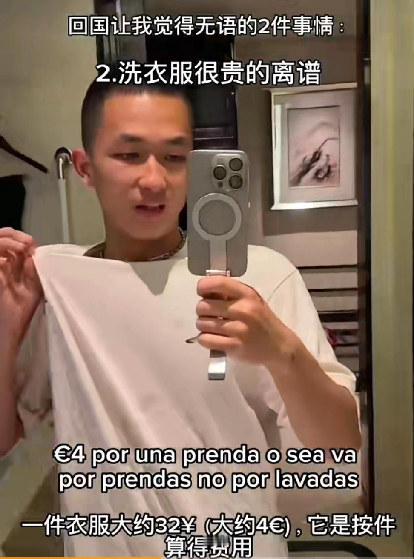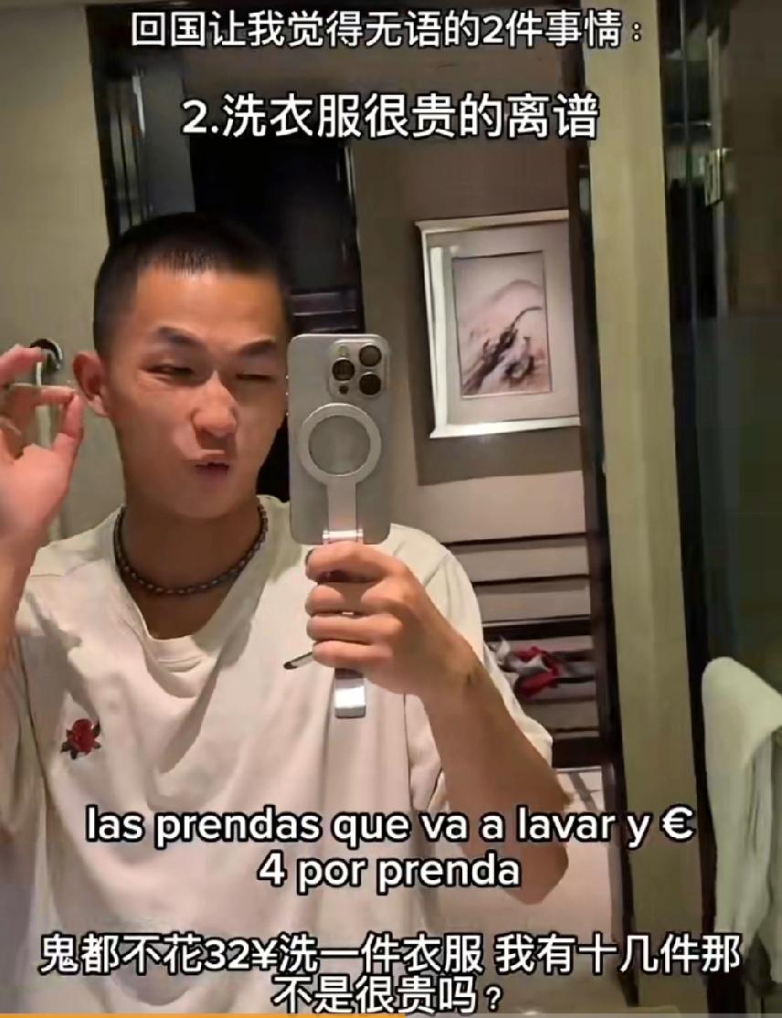 男子从西班牙回来发视频吐槽国内公厕少,商场内还要跑到三楼去上卫生间。他还吐槽国内洗衣服费用太贵,都是按件收费,他入住在五星级酒店,一件要32元,所以,害得他还要在酒店里面自己洗衣服…… 视频中,男子全程用的好像还是西班牙语。 可我明明记得,很多去西班牙旅游的网友在平台上曝出过,西班牙大街都很难找到公厕。 了解西班牙的网友,能不能出来解释一下,到底哪个说的对?