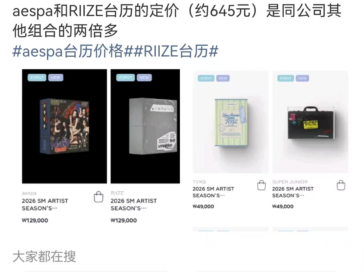 RIIZE aespa台历因为定价不合理 使断交的将太郎大吧和朴元彬大吧联合