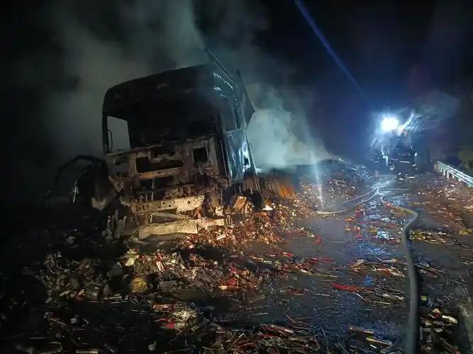 惊魂!沪陕高速货车自燃,数十吨“毒弹”险酿大祸 10月17日,沪陕高速陕西商南段上演惊险一幕:一辆载有数十吨“五硫化二磷”的货车突然自燃起火!视频中,车辆燃起熊熊大火,白色浓烟滚滚升腾,数十辆车被困高速,场面一度混乱。 “五硫化二磷”可不简单,它是金黄色晶状颗粒,有刺激性气味且有毒,遇水、湿空气会分解放出有害气体,与氧化剂混合遇震动、撞击还会爆炸,遇明火等易燃烧,堪称“移动毒弹”。 当地迅速调派消防、应急、生态环境等部门赶赴处置。好在事故未造成人员伤亡,目前货物已燃尽,预计17日17时许通车。不过,受事故影响,沪陕高速商界段等多处收费站入口临时管控。救援工作仍在进行,希望后续一切顺利,高速尽快恢复畅通。