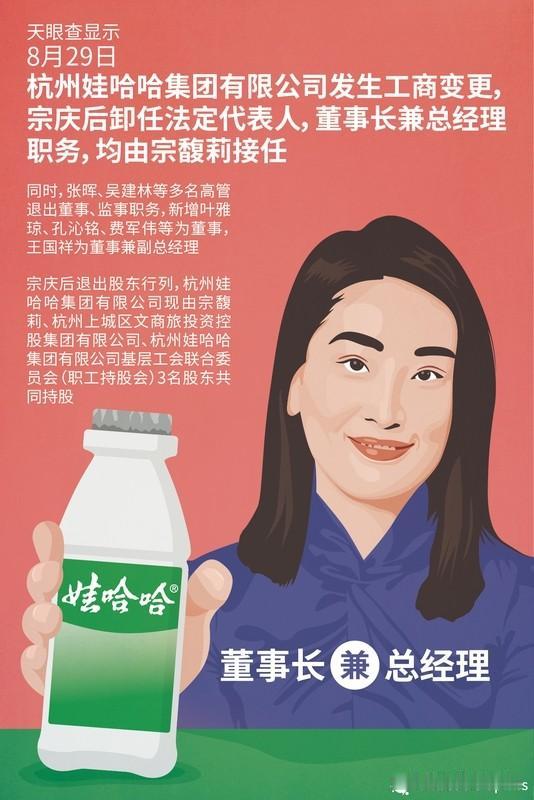 宗馥莉辞去了娃哈哈董事长及总经理职务。此前宗老离世,娃哈哈又与农夫山泉产生了纠纷。在生产链方面,娃哈哈此前好不容易借助网络赢得了大部分网友支持,才得以发展起来。 如今,她却因家庭纠纷遗憾离开娃哈哈,转而经营自己的“娃小宗”,这或许是她在事业与家庭之间的最优抉择。 大家还会支持娃哈哈吗? 娃哈哈宗馥 宗馥莉遗产争夺 宗馥莉财产纠纷 宗馥莉财产争夺 宗馥莉遗产之争 宗馥莉财产之争 娃哈哈继承权