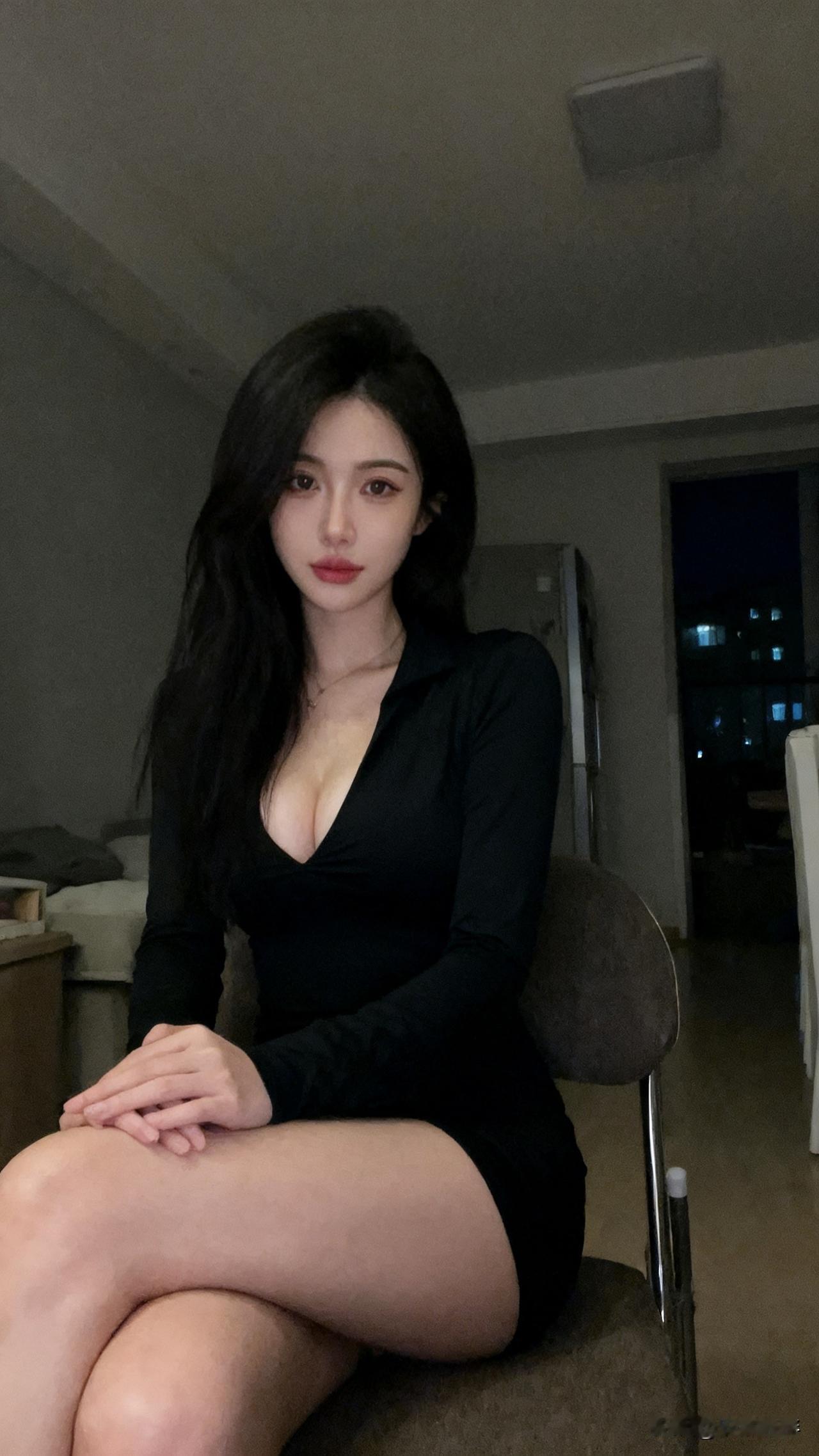 黑裙御姐风,优雅坐椅上,红唇点睛处,魅力无限长气质黑裙