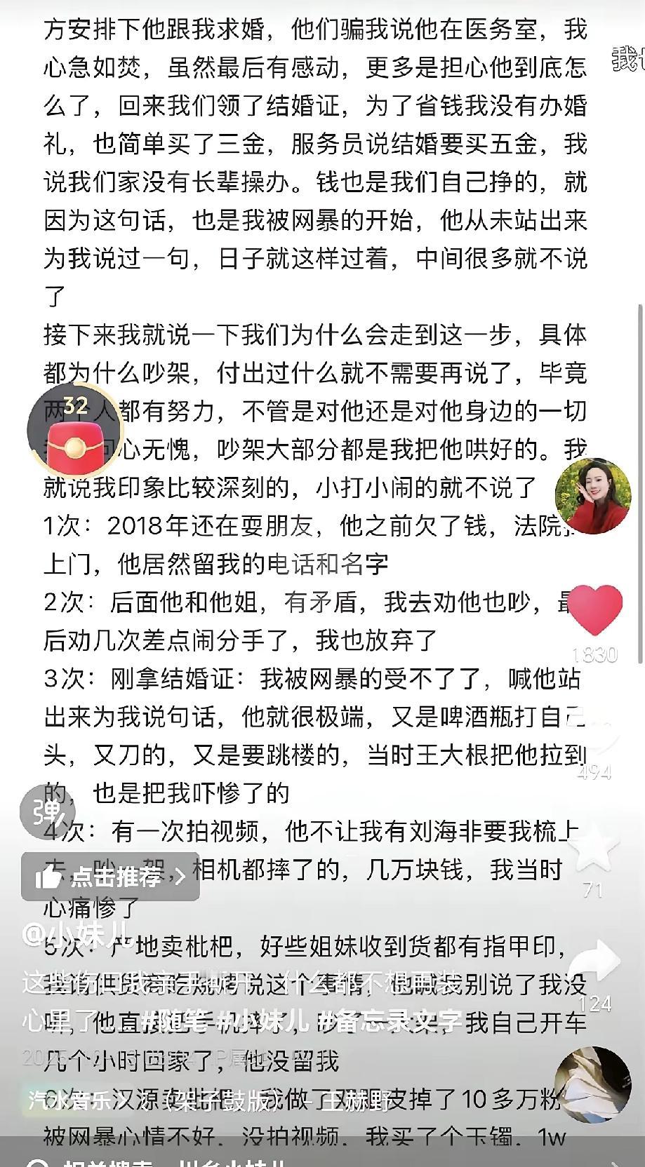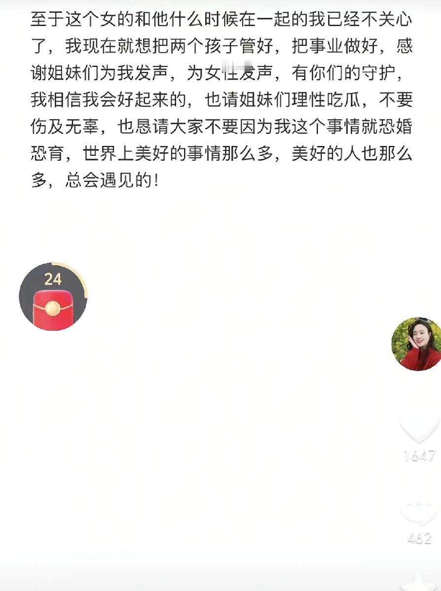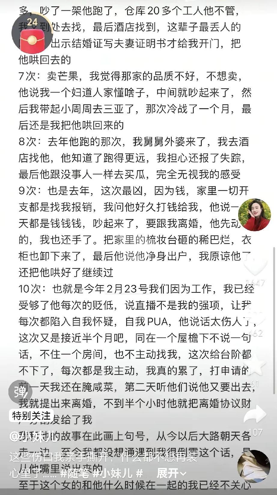 小妹儿从隐忍到主动出击 真的太不容易了 她藏了这么久 终于不用再为了面子 和所谓的“完美家庭”委屈自己 一忍再忍的状态 就是把对方的错 自己的委屈都往肚子里咽 眼睛盯着“孩子有完整家” “丈夫维持好形象”这两个目标 哪怕自己快撑不住也硬扛 现在一拍两散 对方不给面子自己又何必给呢 男方一再不珍惜、自顾自 那真没必要忍 把孩子抚养权拿到手 给孩子踏实的生活才是最关键的 小妹公开谈离婚 小妹儿日常 小妹很敏感 小妹短视频 小妹成长日记 小妹故事