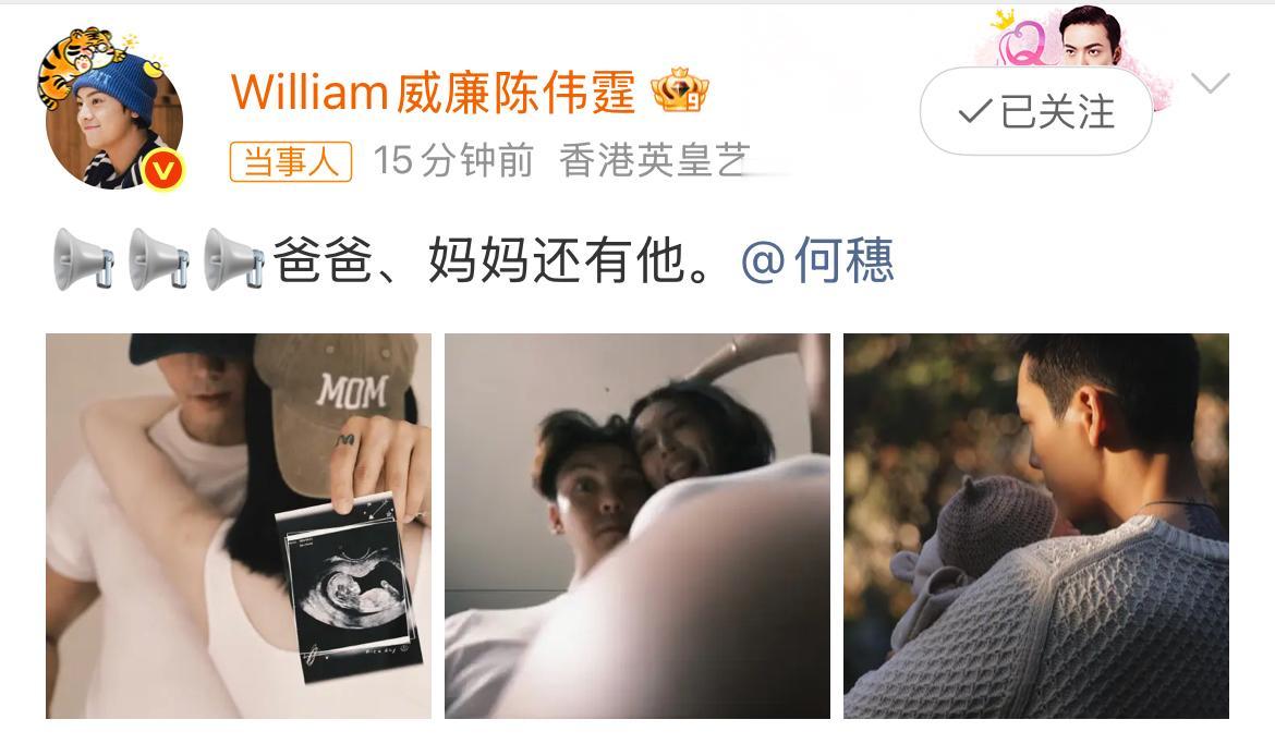 官宣! 陈伟霆何穗孩子生出来了! 曾舜晰、霍汶希第一时间送上祝福: “恭喜佛爷”! 网友感概,曾舜晰网速真快。 陈伟霆的眼光真好, 历届女友都是大美女。 早前以为他和模特何穗 只是谈恋爱, 没想到, 孩子都有了! 陈伟霆等到《许我耀眼》完结才官宣, 也算是有责任感了。 爸爸帅,麻麻美,俩人的孩子估计腿长逆天!再次恭喜二位!
