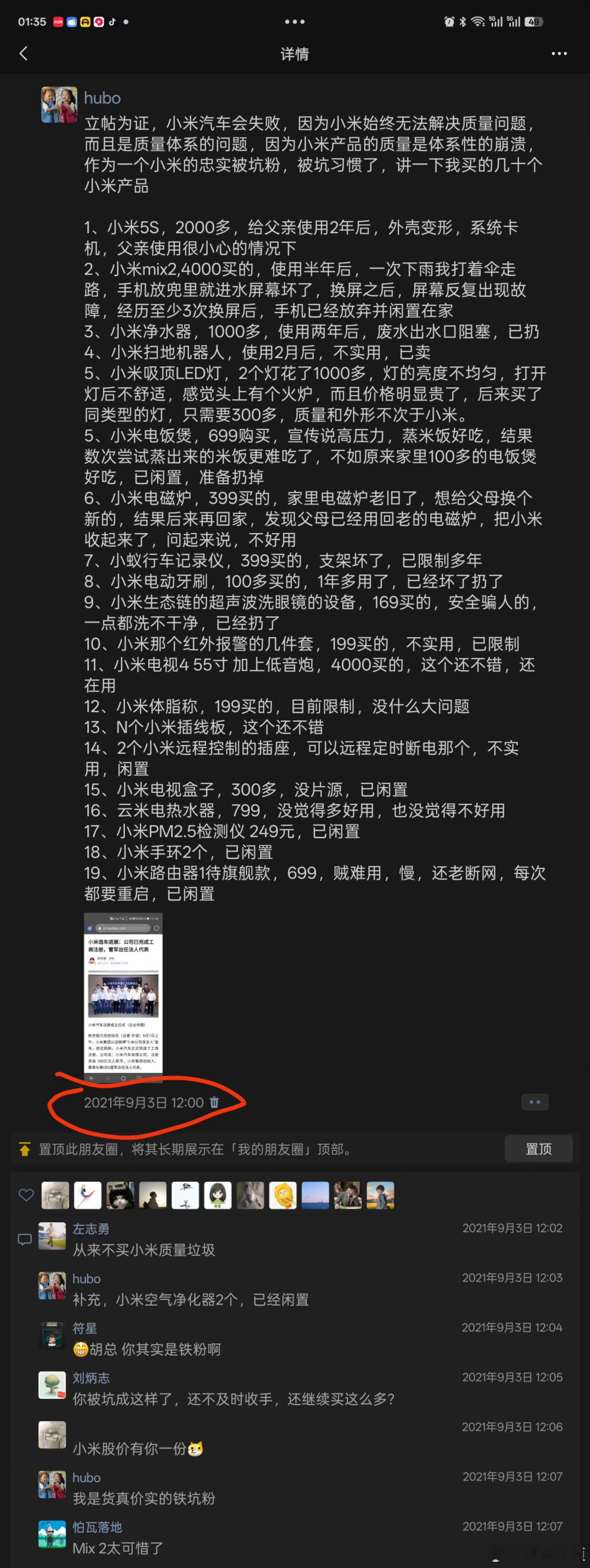 半导体新能源科技观察 3 2025-10-19 03:37 家里的手机电脑都是华为的!小偷米公司的产品也有:电视机,图便宜买的,还没坏。监控摄像头,用两年不到声音变成很大的噪音,网上查说是它家摄像头质量差,用久了都这样!扫地机器人修了两次!觉得它家的东西都是价低质劣,以后坚决不碰!
