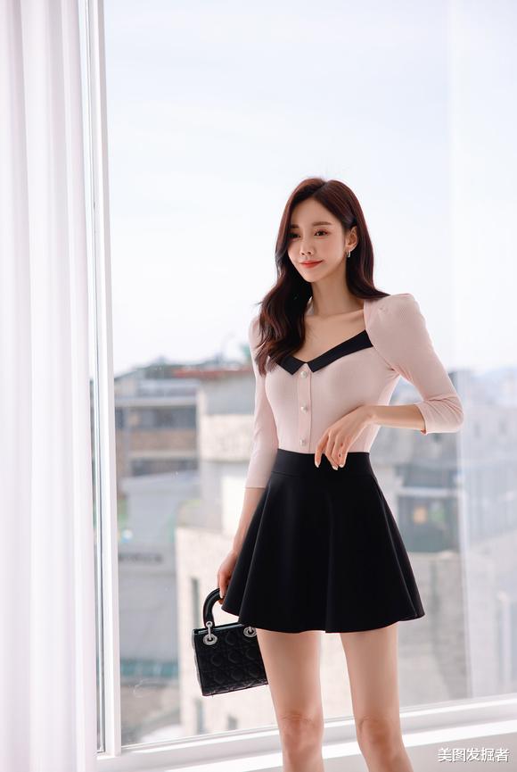 孙允珠迷人穿搭:彩虹挂领半袖粉嫩百褶花洋裙