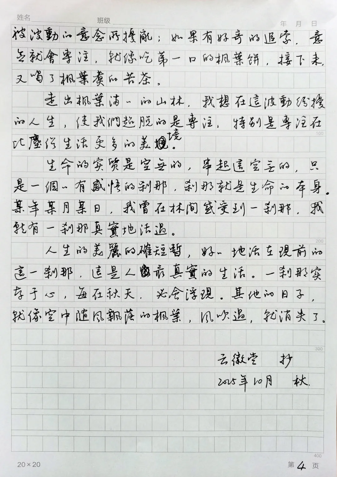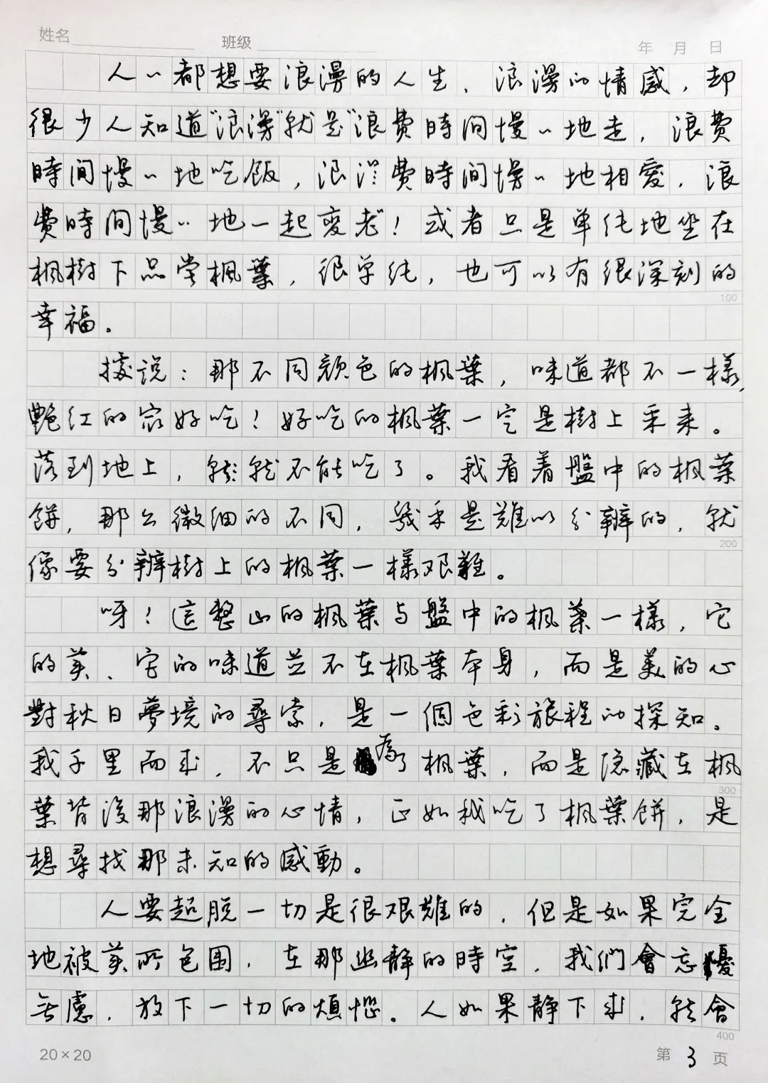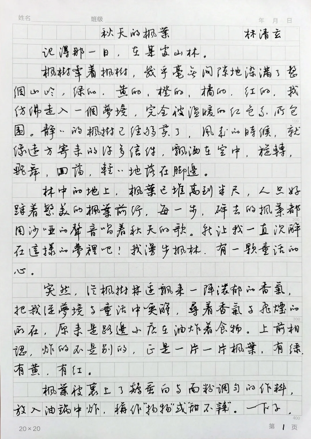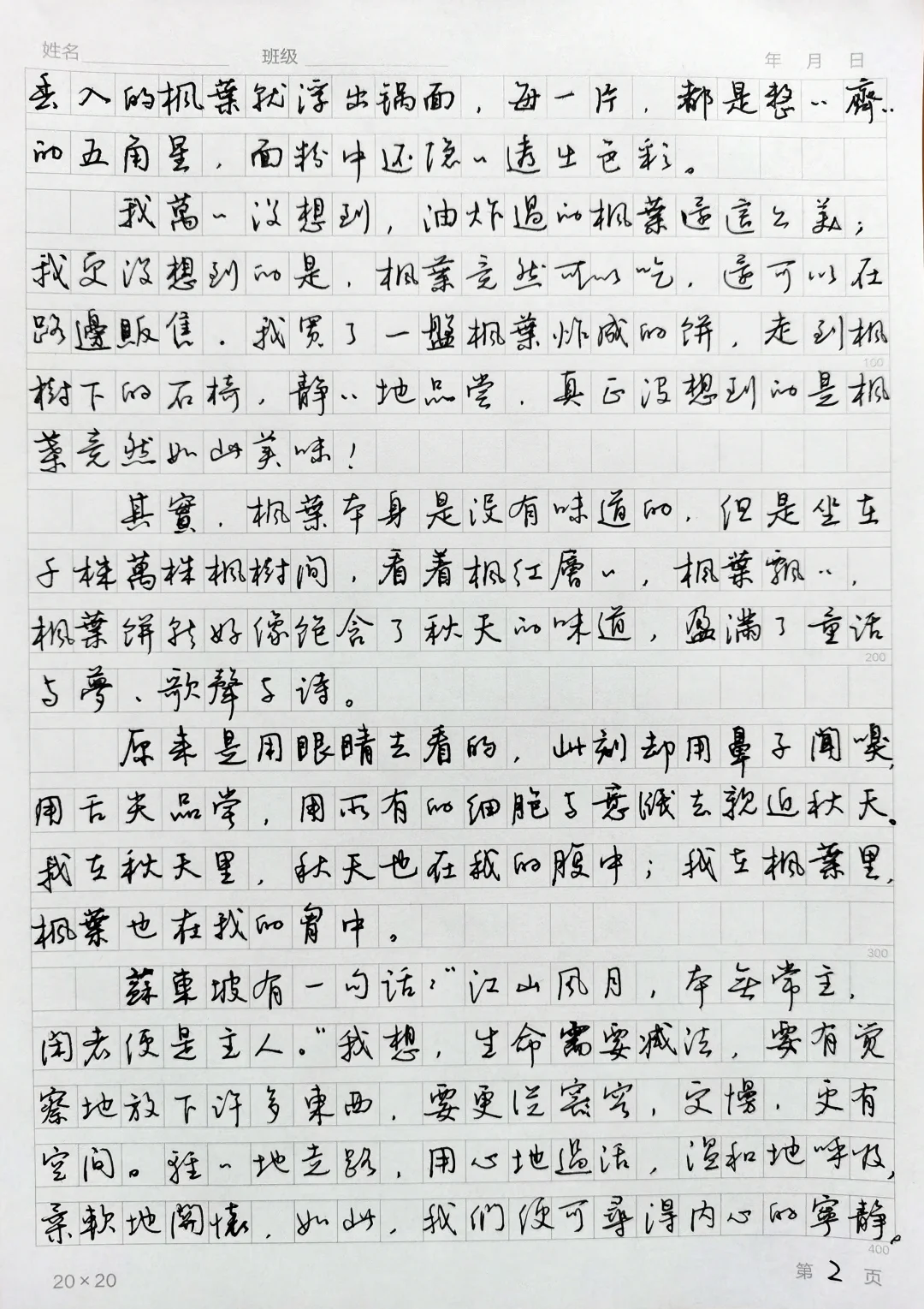 硬笔行书手抄散文摘抄《秋天的枫叶》林清玄