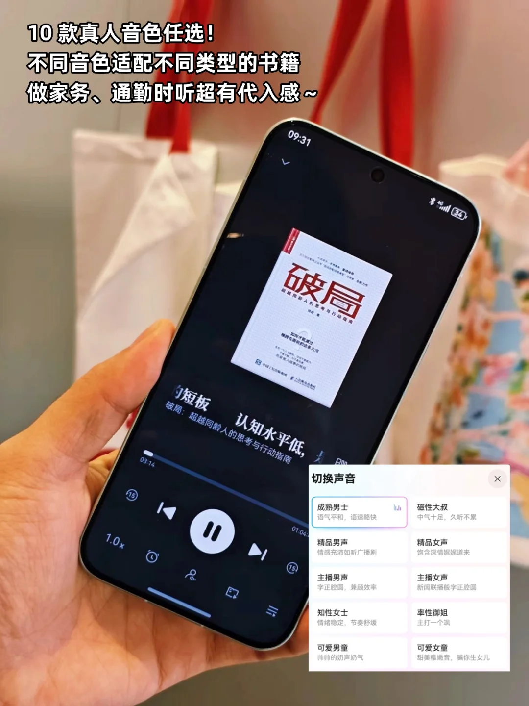 ✅沉浸式听书体验:10款真人音色任选!尤其是 “主播男声” 读《三体》,简直是行走的科幻广播剧,做家务、通勤时听超有代入感~