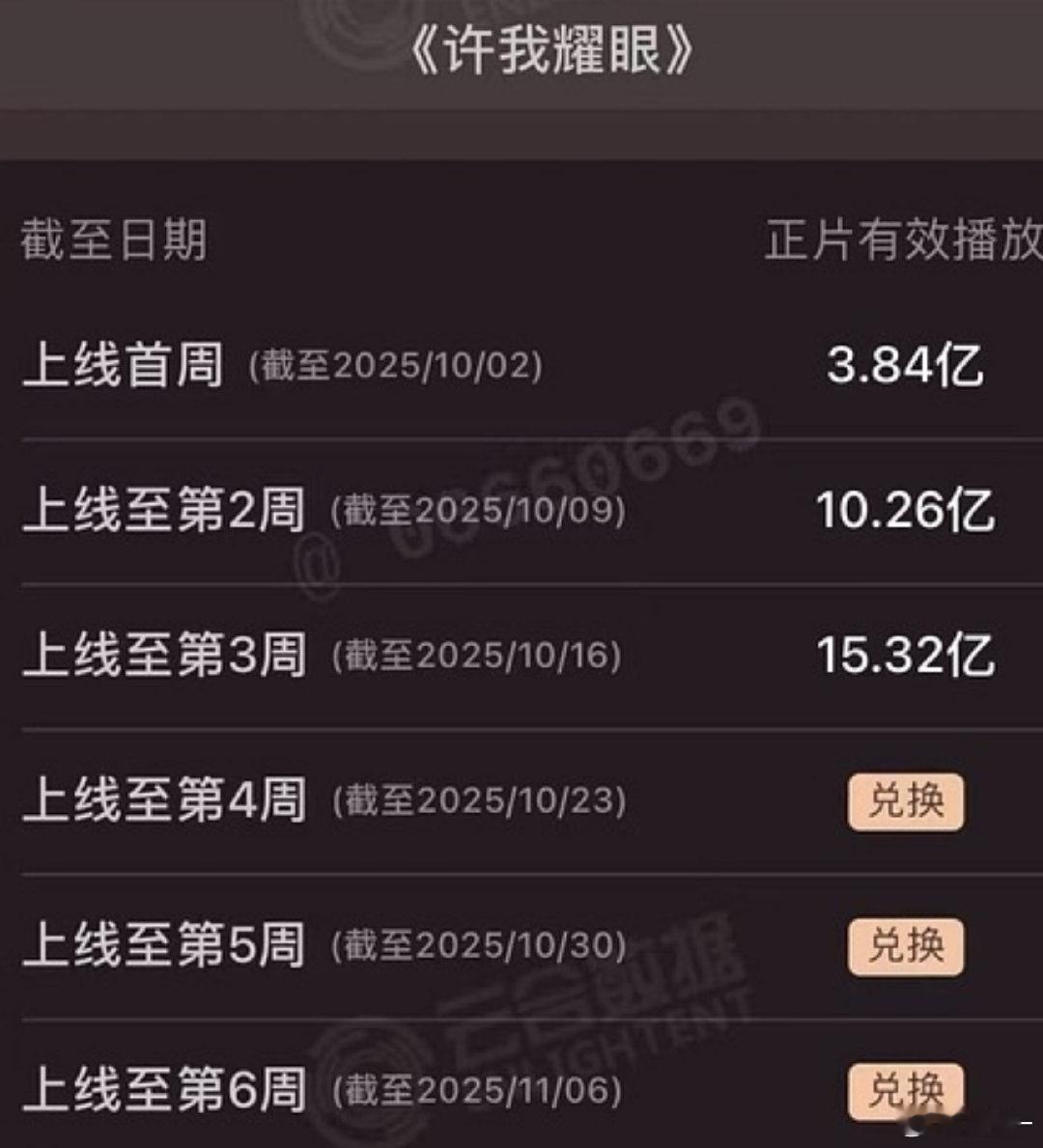 许我耀眼v完结4785,年冠(暂)应该很稳了,6000应该也很稳,就看热播期能不能长一点冲6500