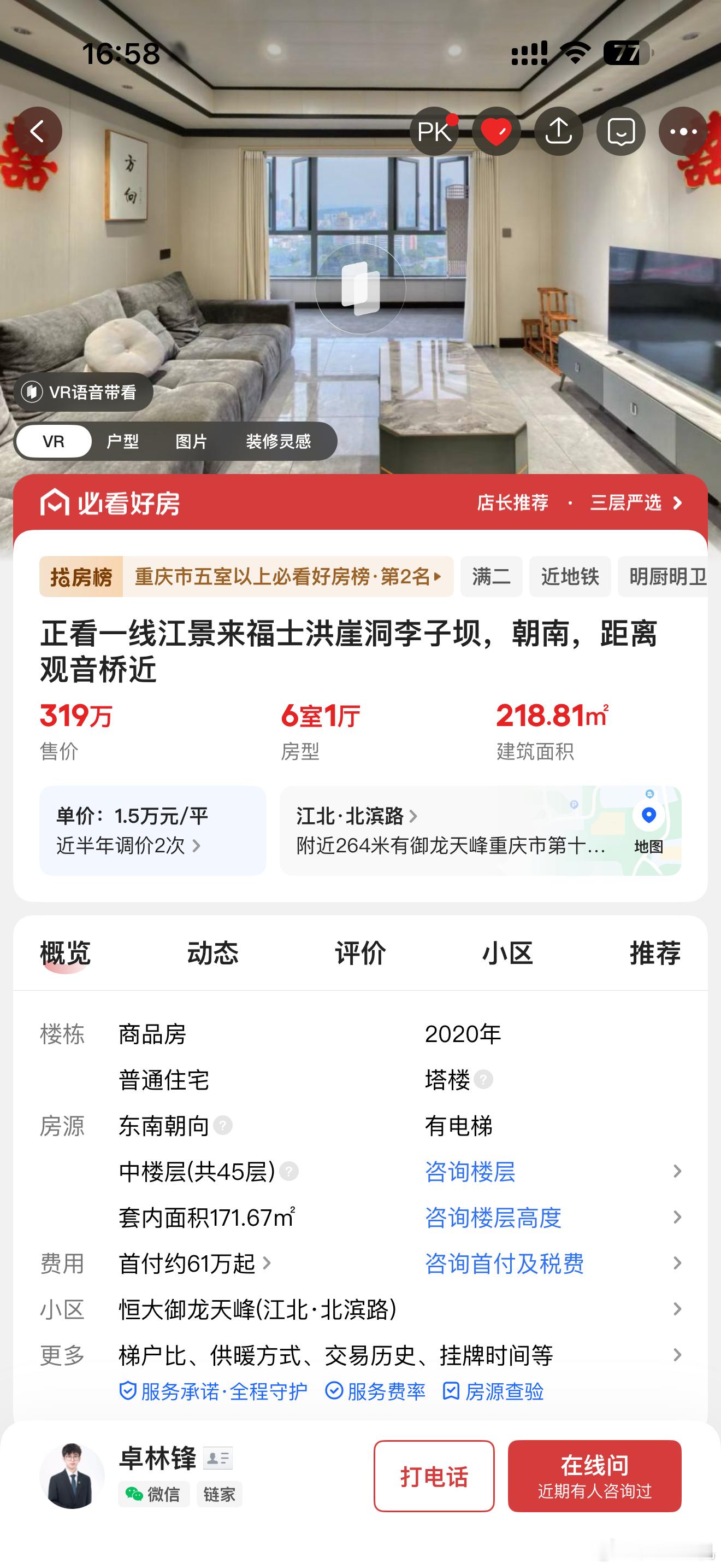 感谢所有帮忙拍摄的房产大V们,让互联网喷子们失望了,没有卖不出去的房子,只有卖不出去的价格,我这套北滨路的房子从7号正式挂起,挂了不到两个星期,今天已经卖掉了,一开始全平台都挂319万,不得不说到家了还是效率高,虽然我最低的预期是到手300万,最终296万成交,去掉中介费就288万,没达到我心里的预期,但是买家很爽快,也是做生意的,跟爽快的人打交道也可以突破我自己的底线,这两年房产市场下行,卖房肯定要有心理准备,这房子我住了两年多,前后也亏了一百来万,但再怎么样,什么东西都有自己的价值,绝对不是互联网某些低认知的喷子所说那么一文不值,地段稀缺性的房子照样有市场,218平不到300万,北滨路极佳的江景精装房,业主也是看了两次,对比了几套房子就直接秒了,我也爽快些,不喜欢墨迹,反正都是亏,无非是亏多亏少。数码科技评论[超话]