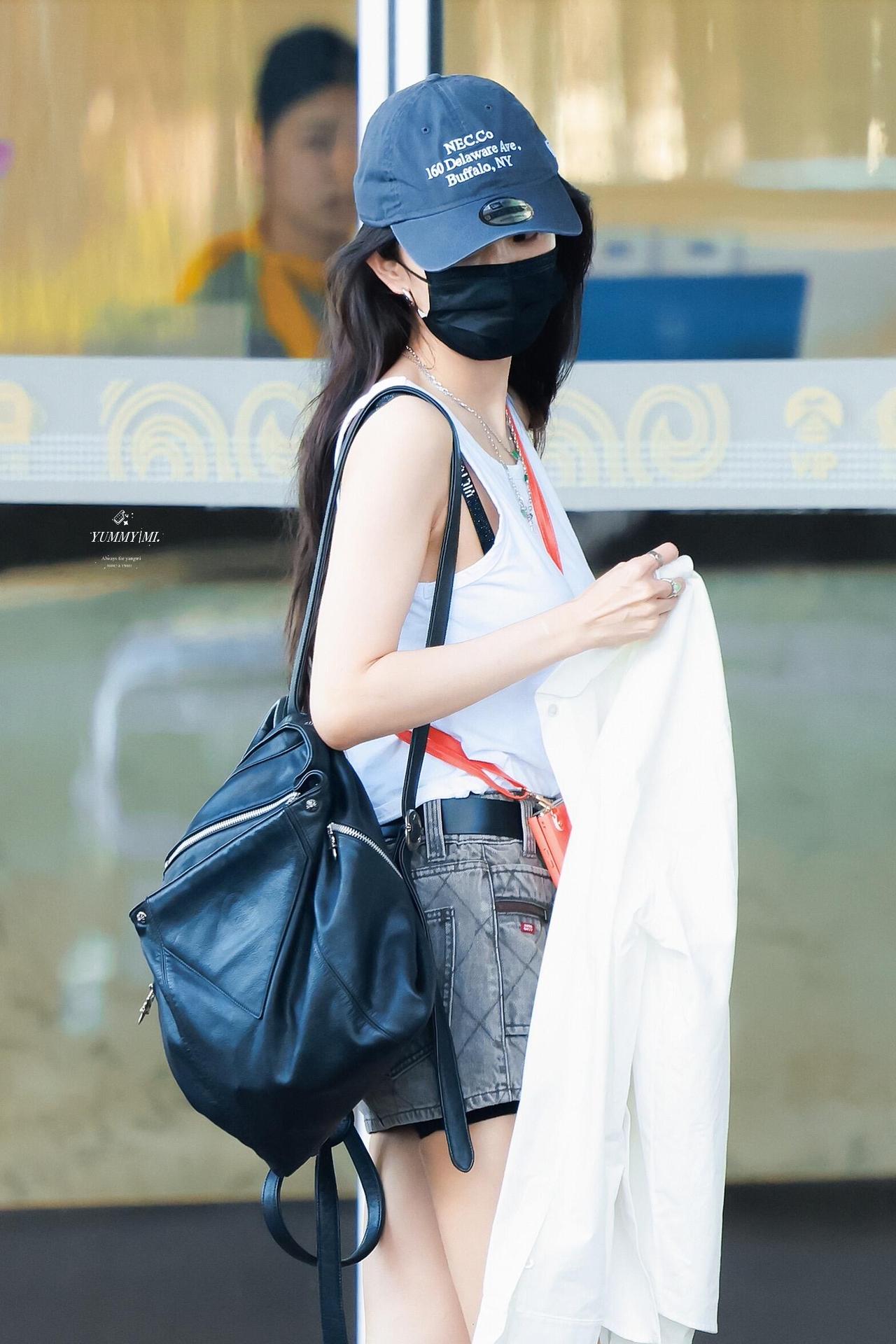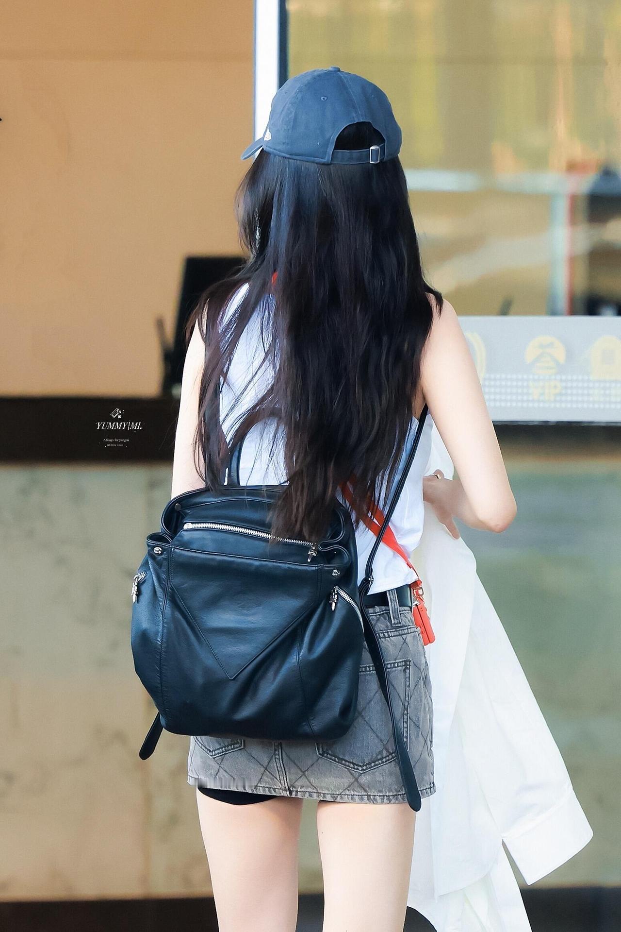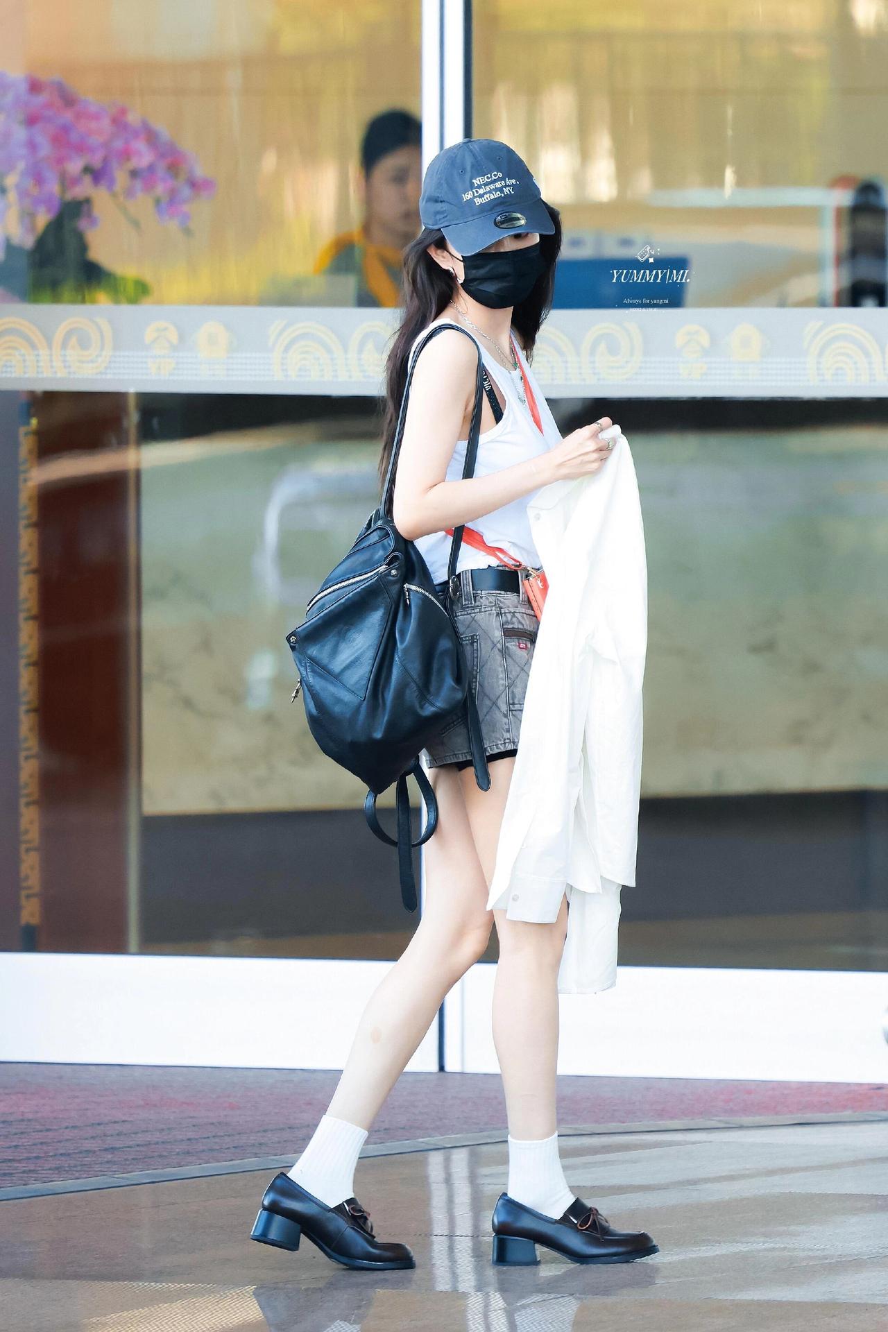 杨幂的夏日机场穿搭太懂“辣妹松弛感”了!MISS SIXTY菱格牛仔短裙搭白色背心,外披衬衫随性又惹眼;搭配New Era棒球帽、STACCATO乐福鞋与黑色双肩包,把“背心短裙+中筒袜”的甜辣公式玩出了高级感,这身look把夏日出街的吸睛度和舒适感焊死了,普通人照搬也能美成街头焦点~ 杨幂 明星同款