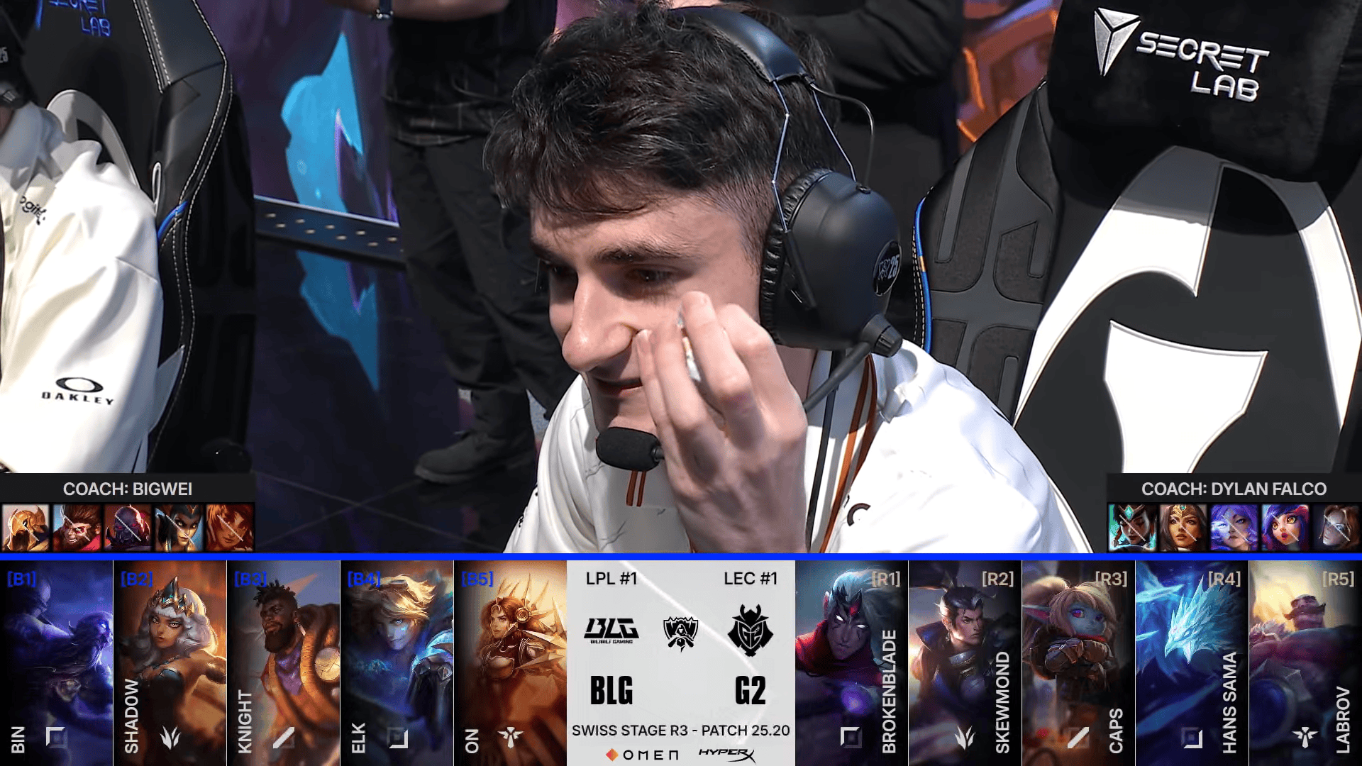 G2选用:BrokenBlade波比、SkewMond赵信、Caps冰鸟、HansSama韦鲁斯、Labrov布隆