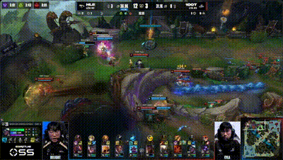 虎扑10月18日讯HLE对阵100T,Zeus塞恩全场7/0,HLE上路团0换4大胜100T