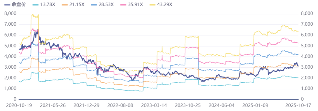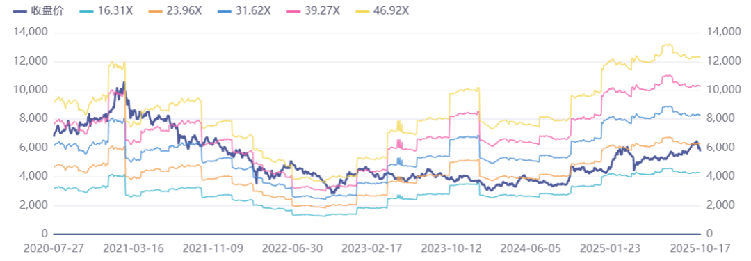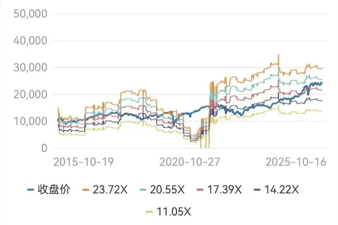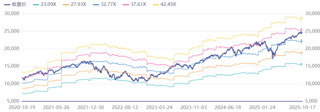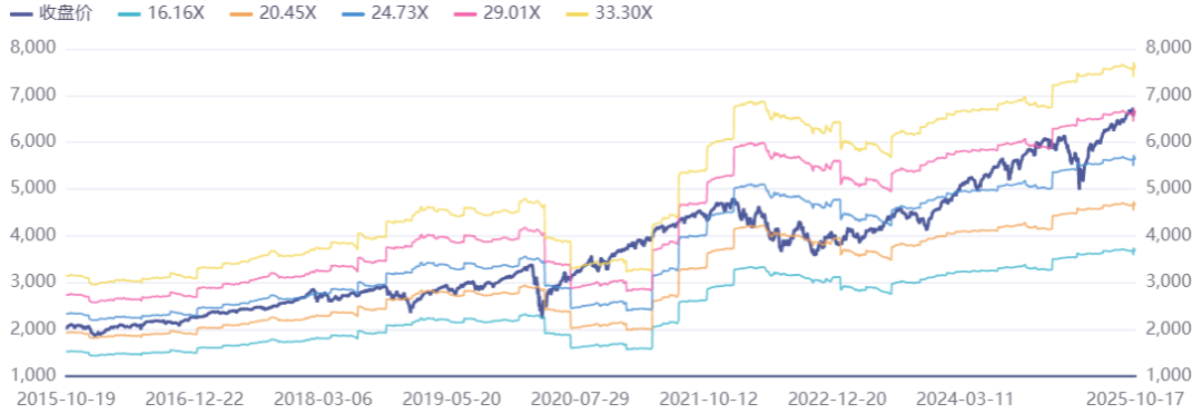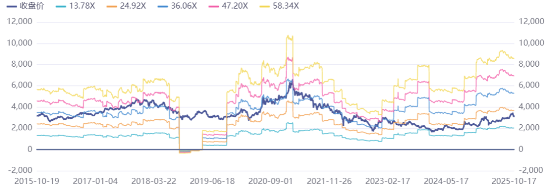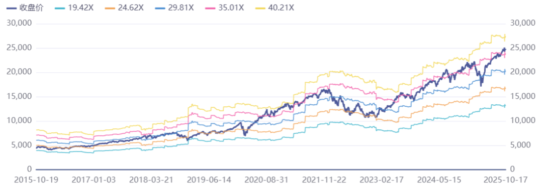指数近十年PE-bands数据,德国DAX指数当前估值合理。