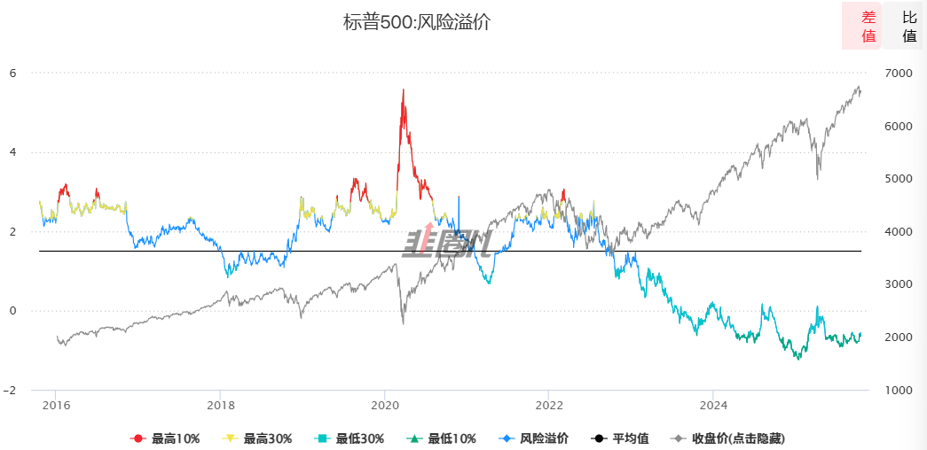 从近10年来看,标普500指数FED百分位当前处于历史低位。目前,并不是一个合适的介入时点。