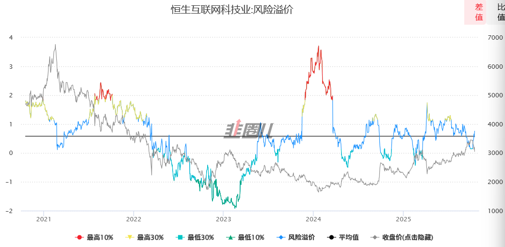 从近5年来看,恒生互联网科技指数FED百分位处于历史中性位,有