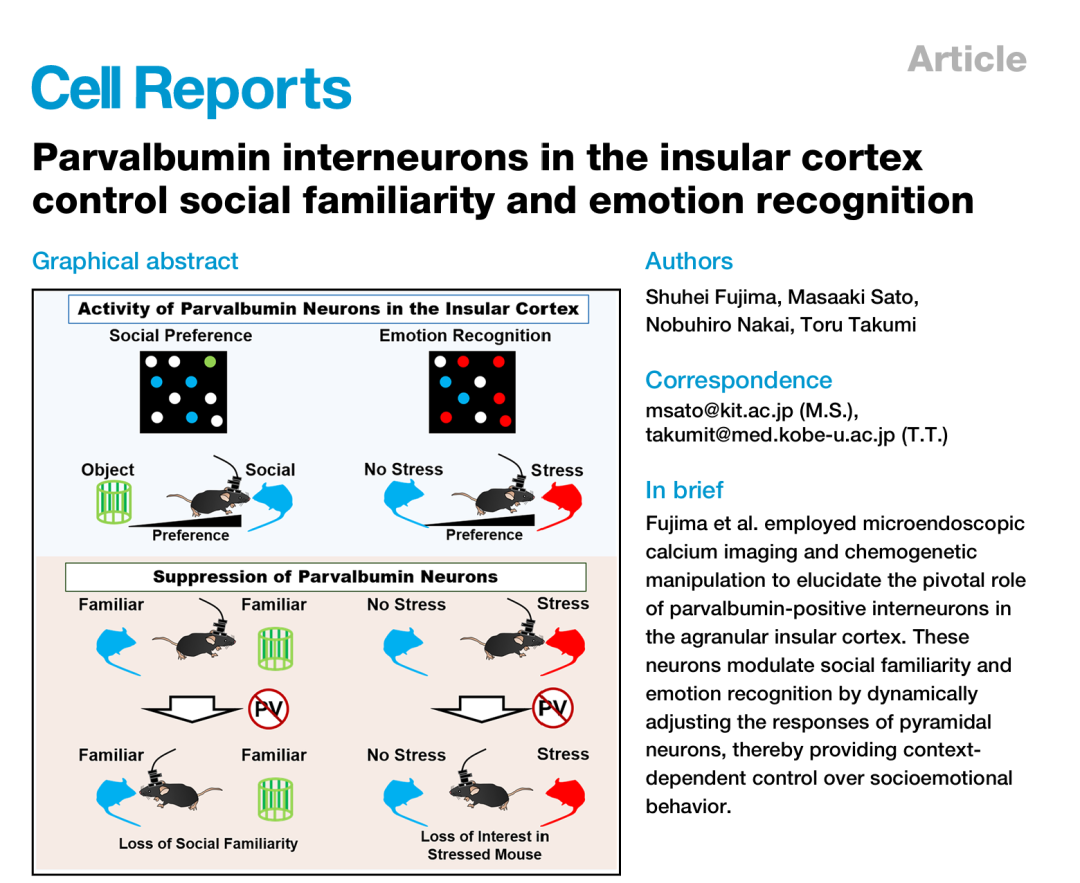 FujimaS,SatoM,NakaiN,TakumiT.Parvalbumininterneuronsintheinsularcortexcontrolsocialfamiliarityandemotionrecognition.CellRep.2025;44(9):116085.doi:10.1016/j.celrep.2025.116085