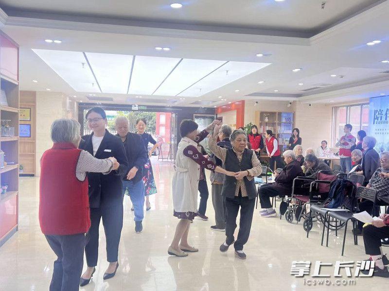 17日上午,在长沙市第一社会福利院,随着钢琴声响起,20余名老人打起拍子唱起歌,不一会儿兴致来了,几位老人还跳起了舞。“感觉非常好,就像住在自己家里一样。”老人肖子文高兴地说。“敬老月”期间,长沙市第一社会福利院开展政策宣传、互动体验、现场参访等活动,邀请广大市民参观安宁疗护中心、失智失能照护中心、养护一区等医养区域,对养老政策进行宣传展示,让大家了解养老新资讯及惠民政策。