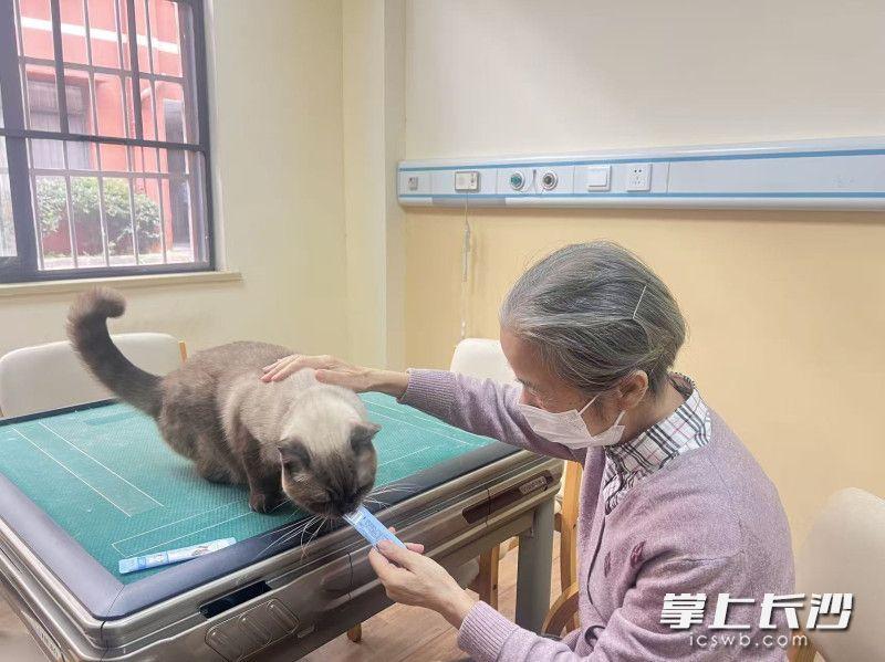 普亲养老长沙桂花坪院院长余莉告诉记者,院里“活力老人”比较少,大部分是患有中风、偏瘫、阿尔茨海默病的老人,她便想到增加一些让老人们感到温暖、对未来生活产生期待感的“员工”。在事先了解老人们是否害怕猫、是否对猫毛过敏后,这两位“员工”上岗了。陈奶奶每天都要来撸猫,她说:“心情真的会放松,老人跟小孩一样,一个人在家里会感到有点孤独,住在这里就像大家庭一样。”“敬老月”期间,普亲养老长沙桂花坪院开放手工区、康复区等养老体验区,还为老人提供试住体验。