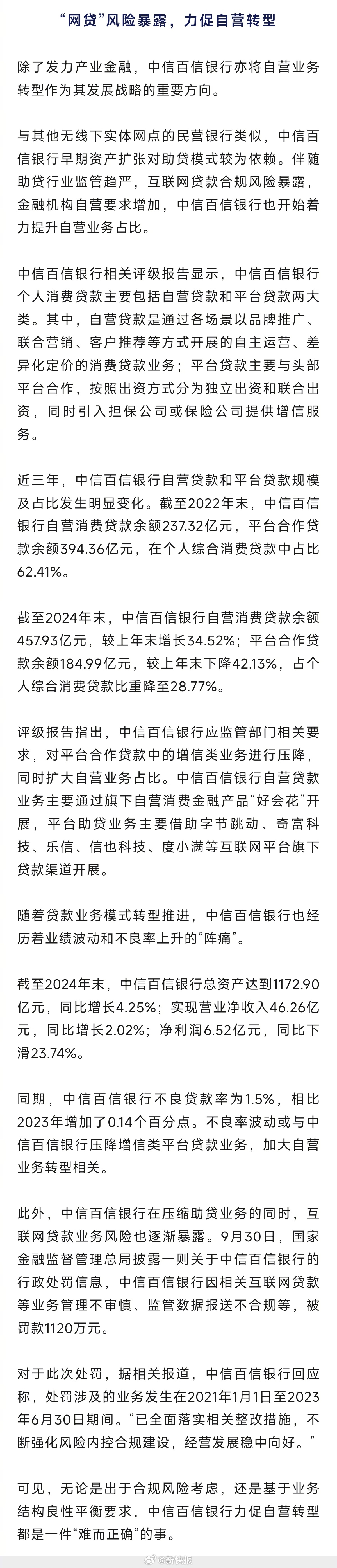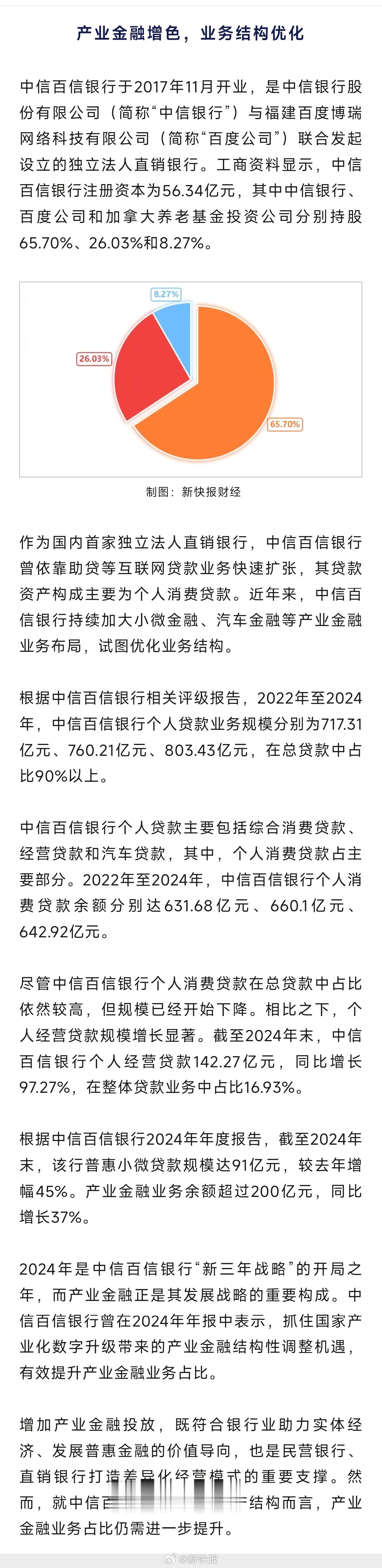 长期以来,中信百信银行依赖消费贷款驱动业绩增长,相比消费贷款规模和占比,产业金融底色并不十分突出。如今从外部引入产业金融管理人员,也透露出中信百信银行业务转型的决心。(新快报记者辛捷恺)