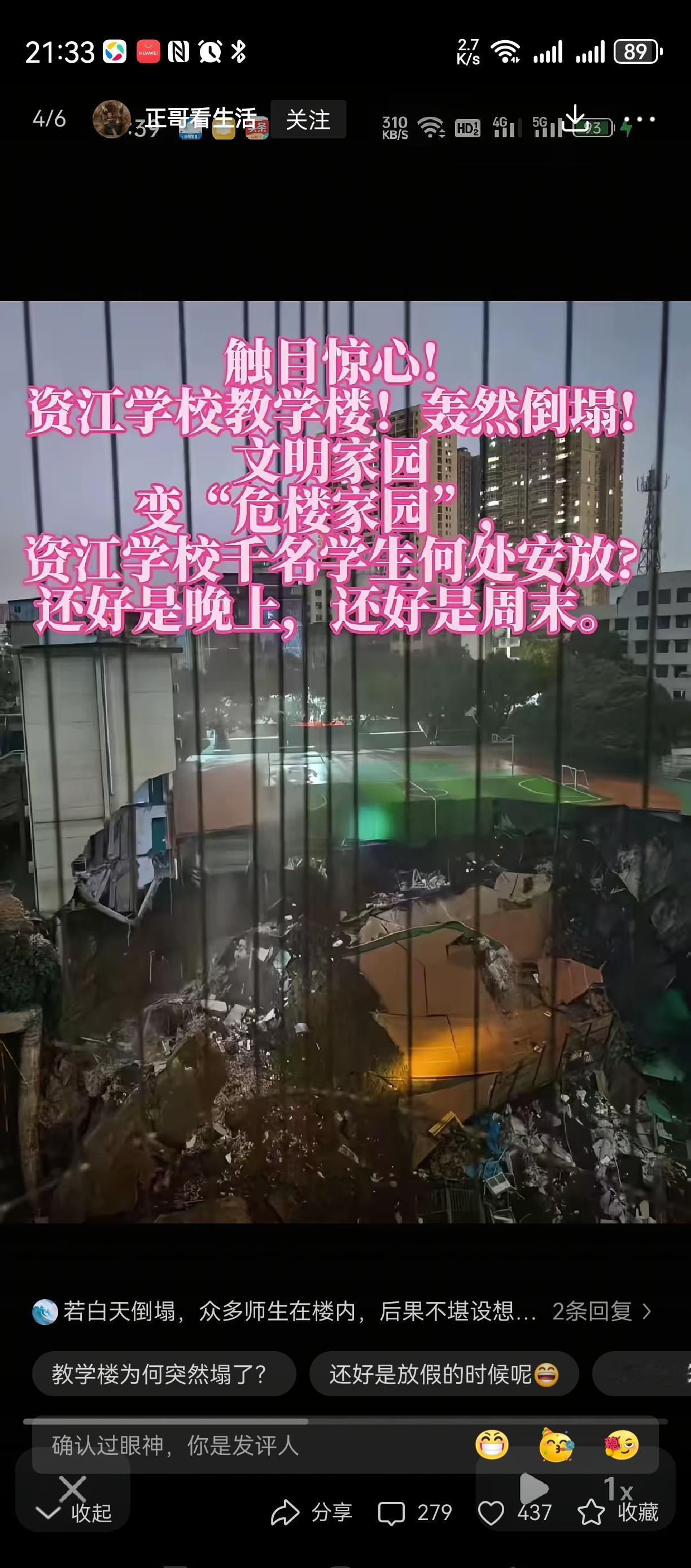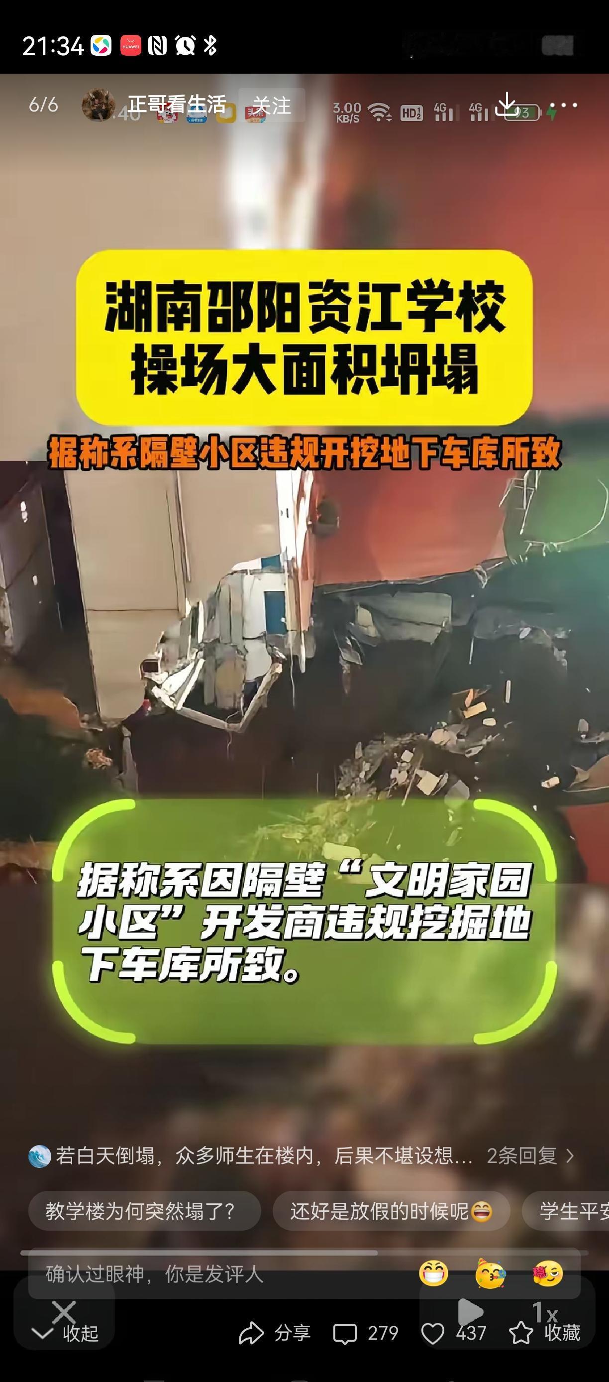 老板哭了!学生笑了!邵阳资江一小学发生大面积垮塌,原因是隔壁一小区挖地下停车场所
