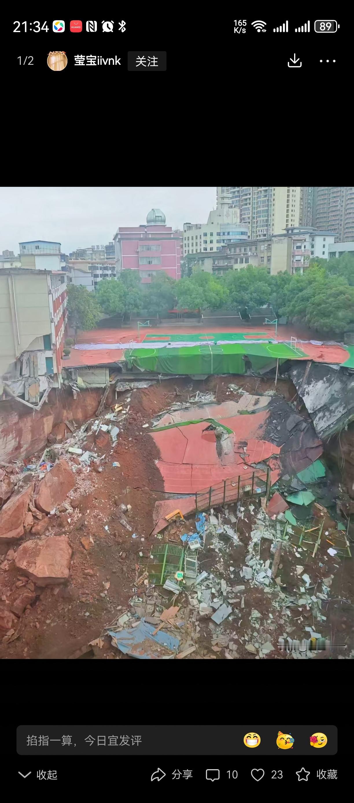 我的天,真的太可怕了吧。邵阳资江学校的操场坍塌这么多,附近的住户真的岌岌可危了