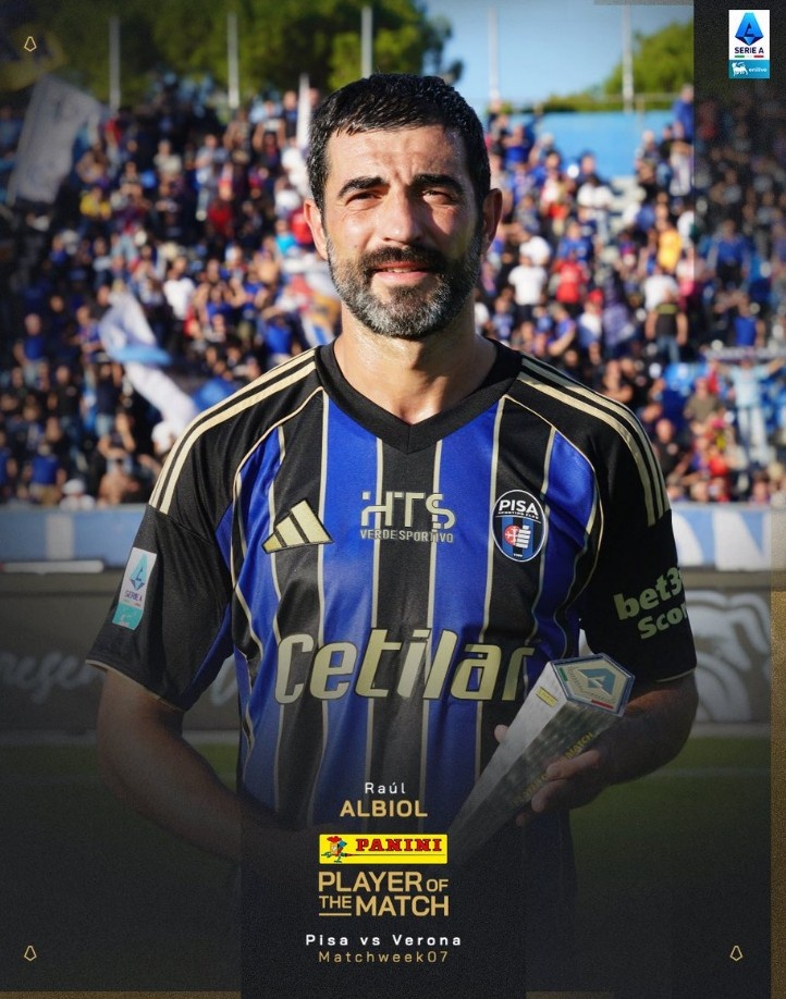 老而弥坚,意甲官方:40岁阿尔比奥尔当选比萨0-0维罗纳全场最佳