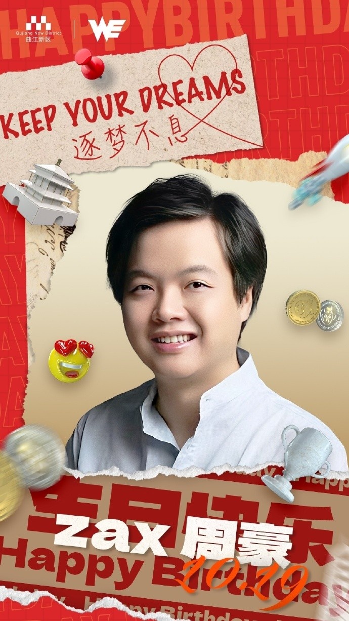 直播吧10月19日讯今天是10月19日,是WE电子竞技俱乐部创始人WE.Zax周豪的生日,同时也是我们英雄联盟分部前队长WE.Misaya若风禹景曦的生日。